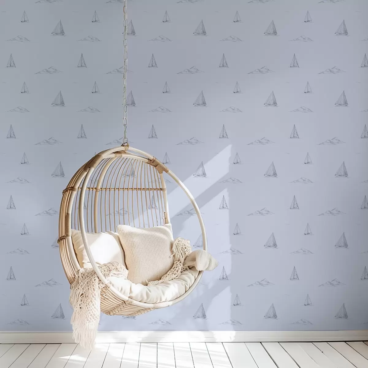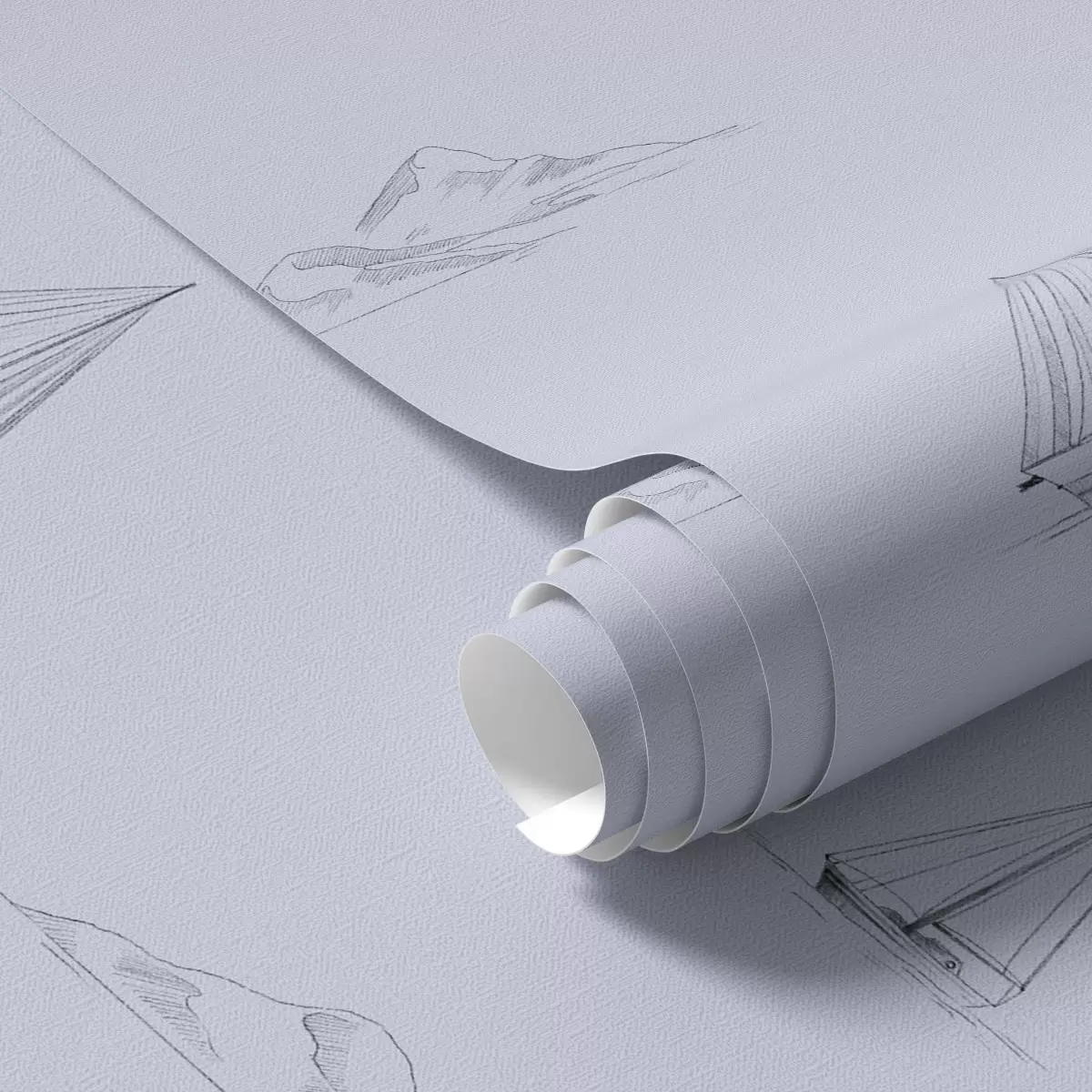 Wallpaper Sketch yachts and islands, blue background a00654v3