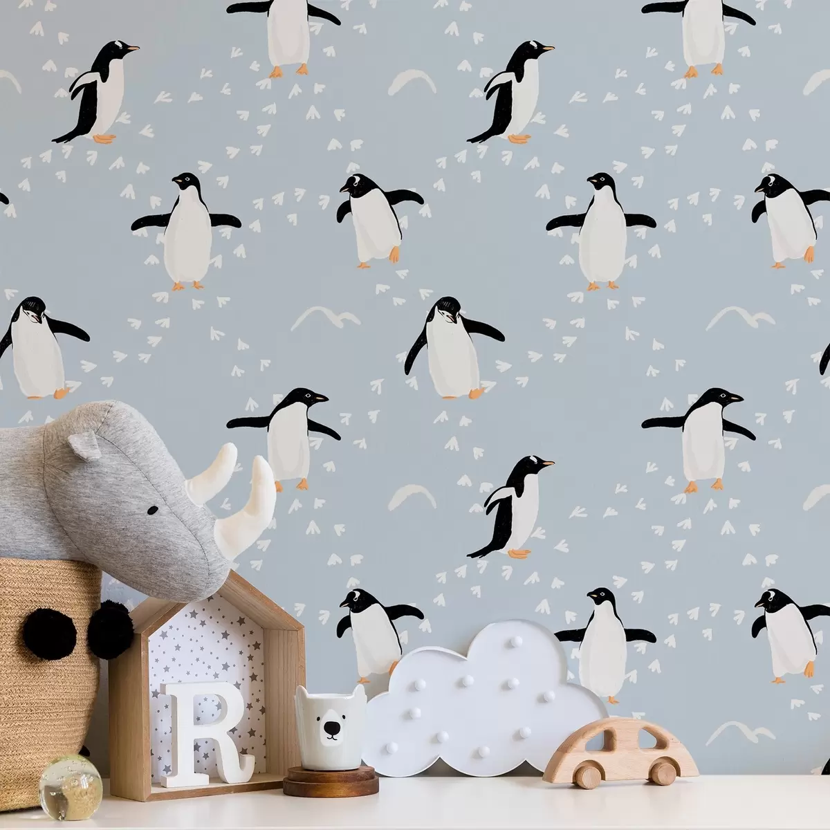 Wallpapers Penguins on light blue, rhythm of footprints Nr. a00655v2