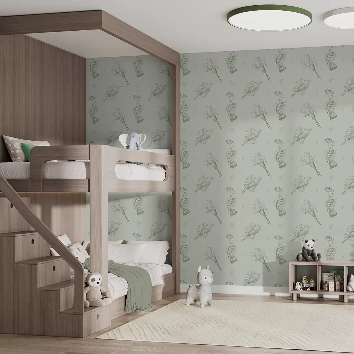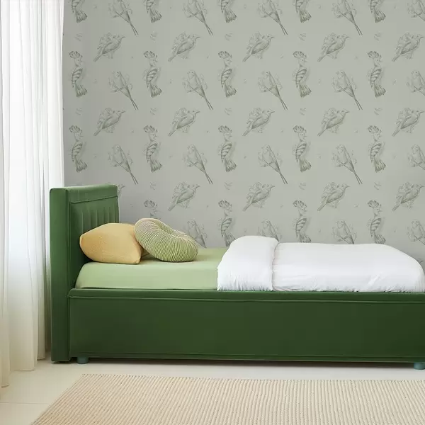 Wallpapers Bird toile: sketch birds on gray-green background Nr. a00656v1