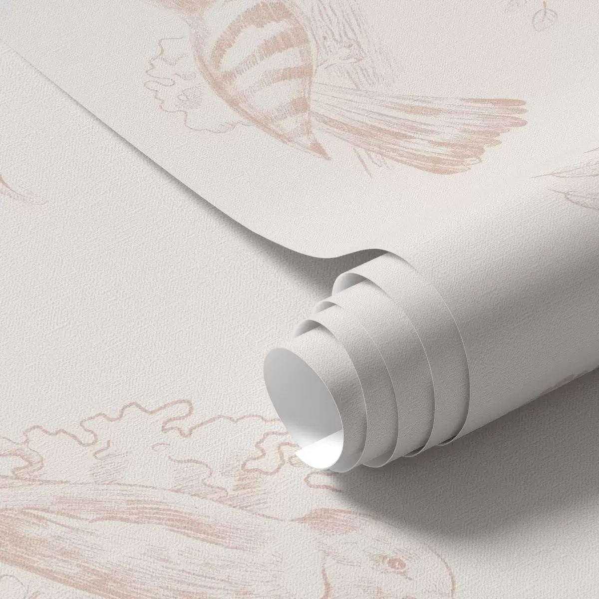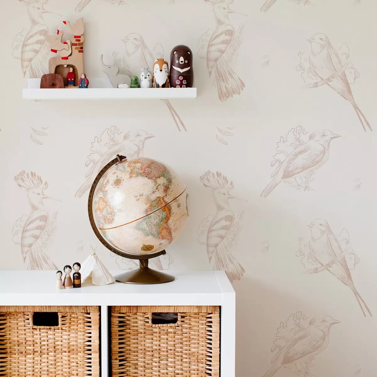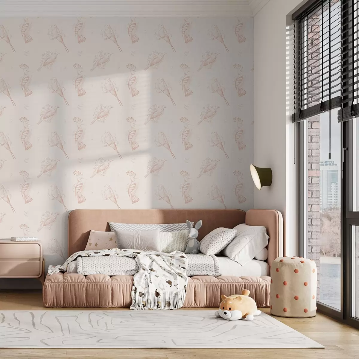 Wallpapers Bird toile: sketch birds on peach-cream Nr. a00656v2