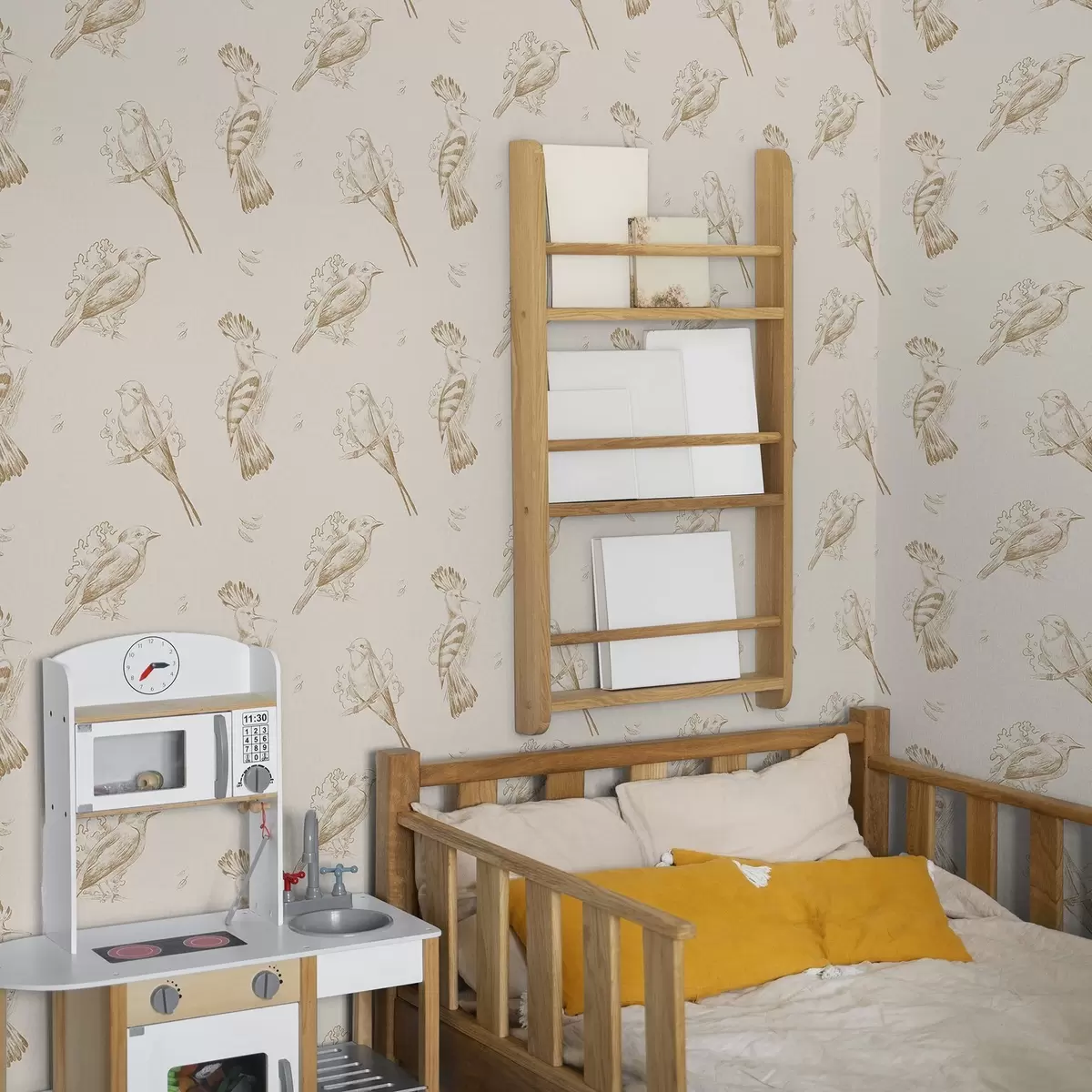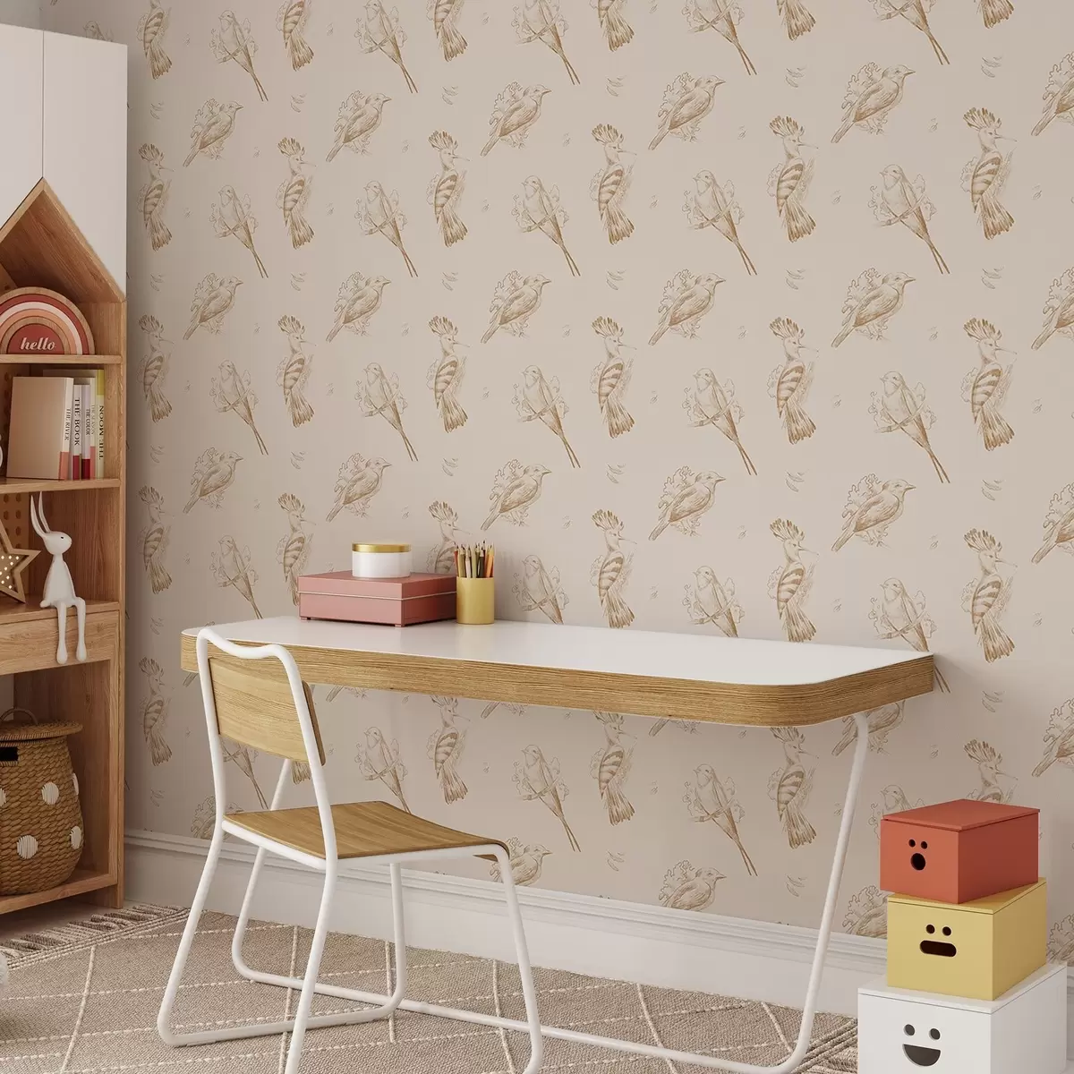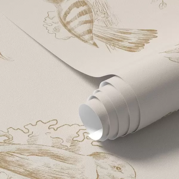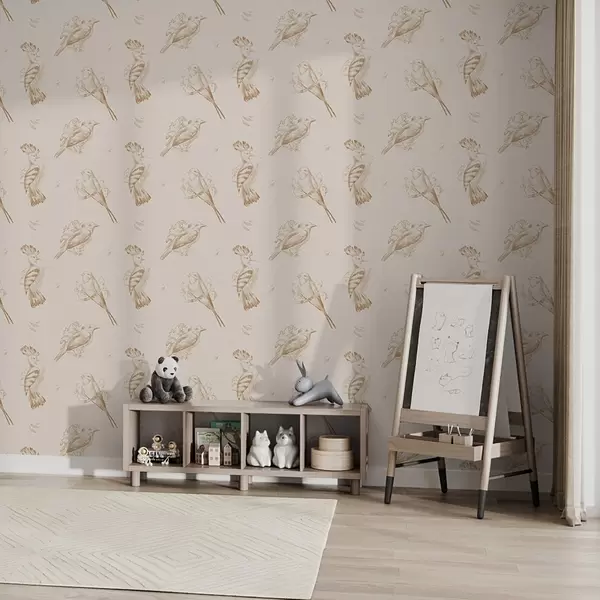 Wallpapers Bird toile: sketch birds on warm beige Nr. a00656v3