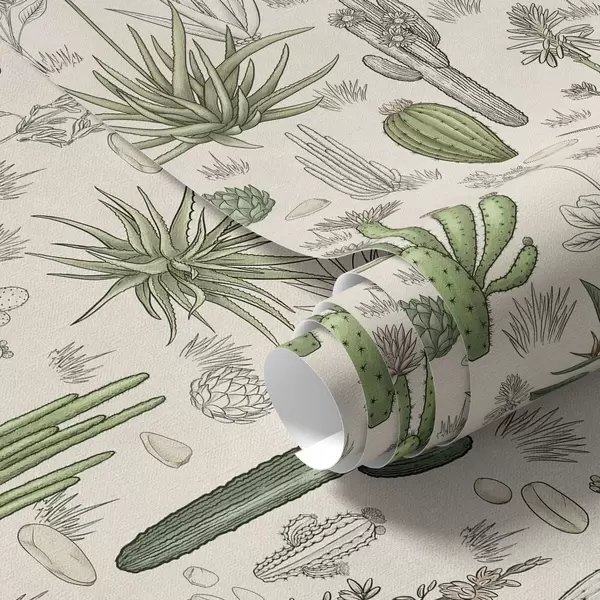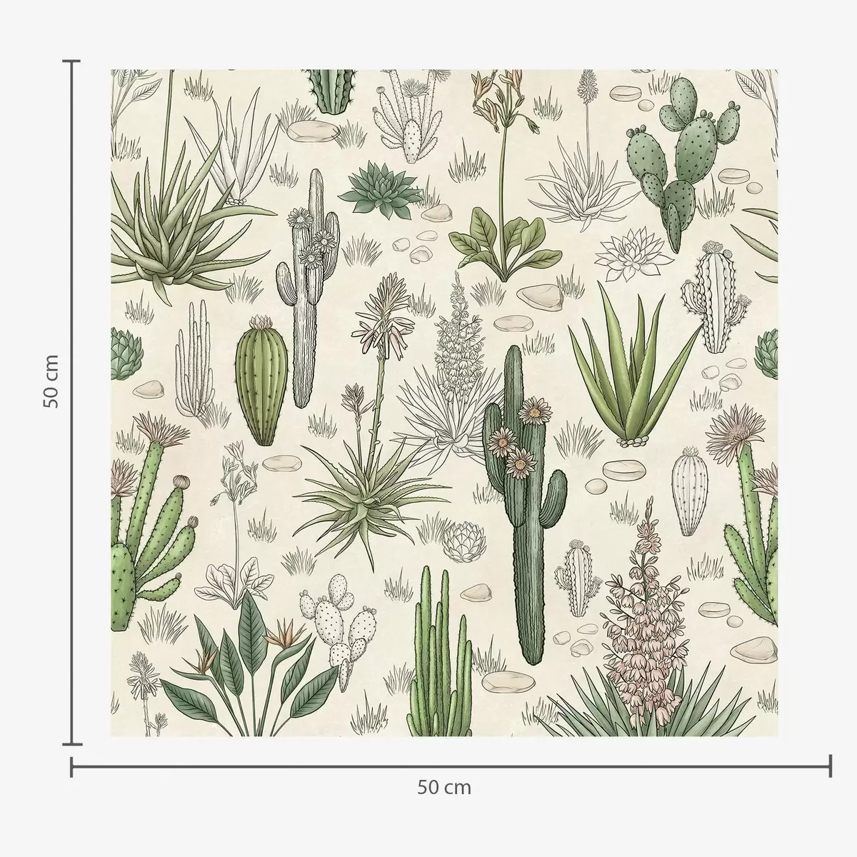 Wallpapers Cacti and succulents on a warm background, detailed print Nr. a00666