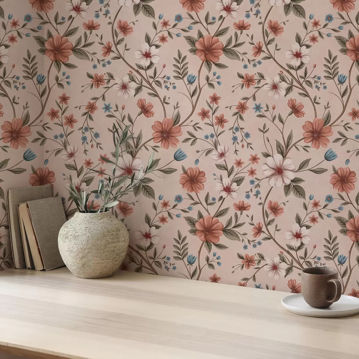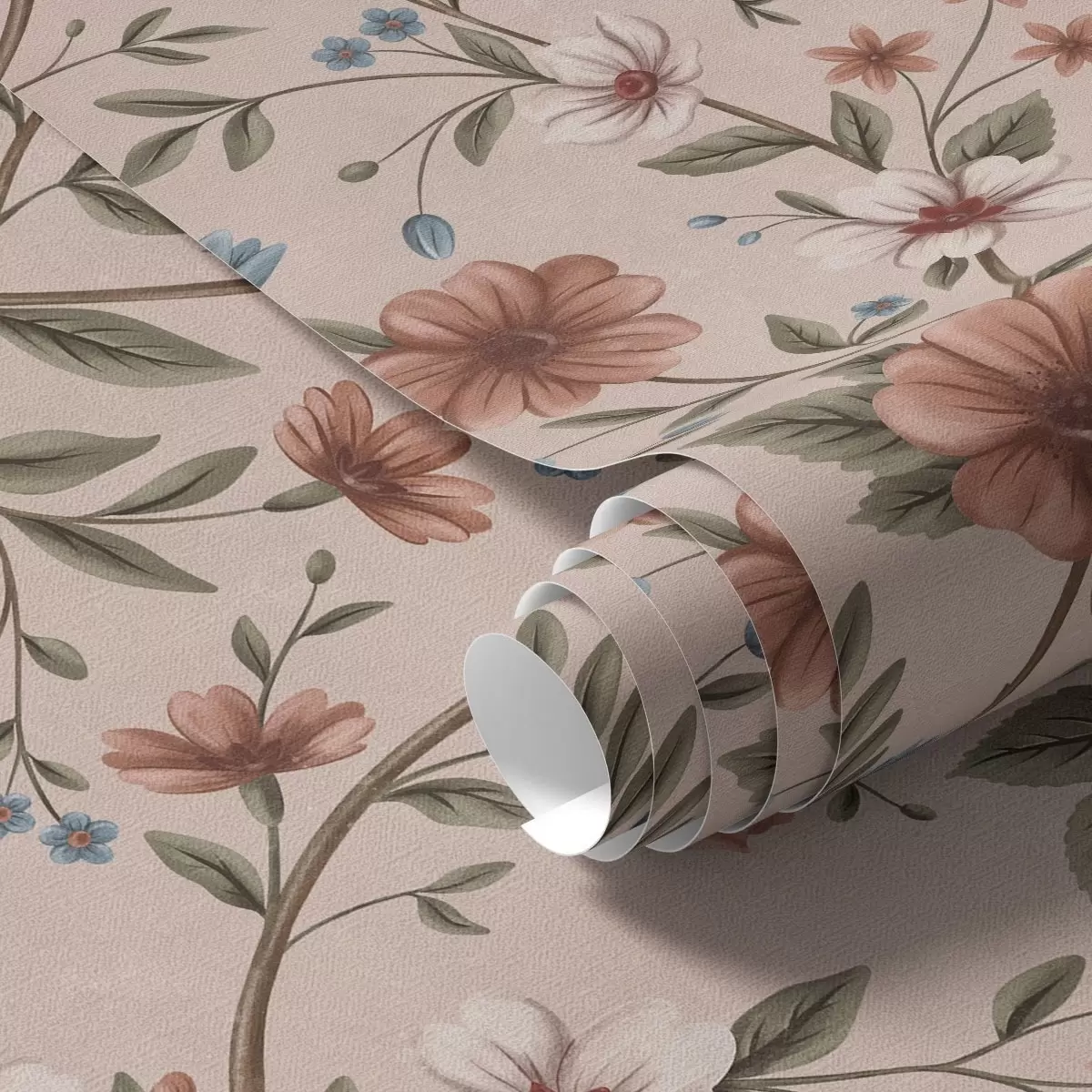 Wallpapers Pink-coral flowers and foliage on dusty pink Nr. a00667