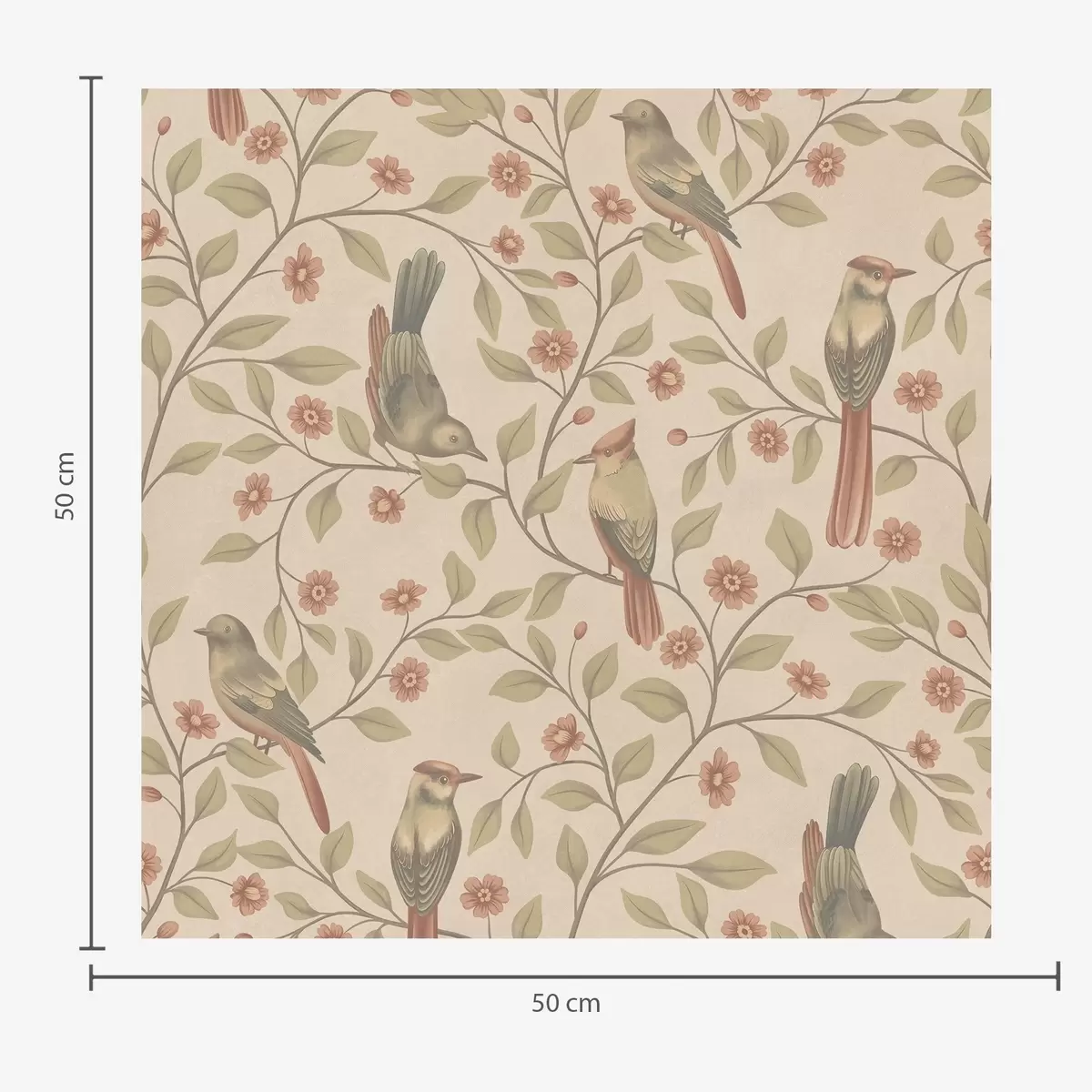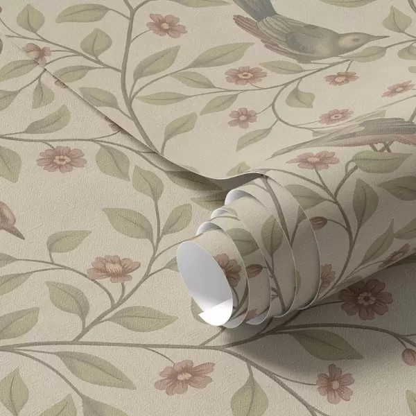 Wallpapers Birds on flowering branches, warm beige background Nr. a00670