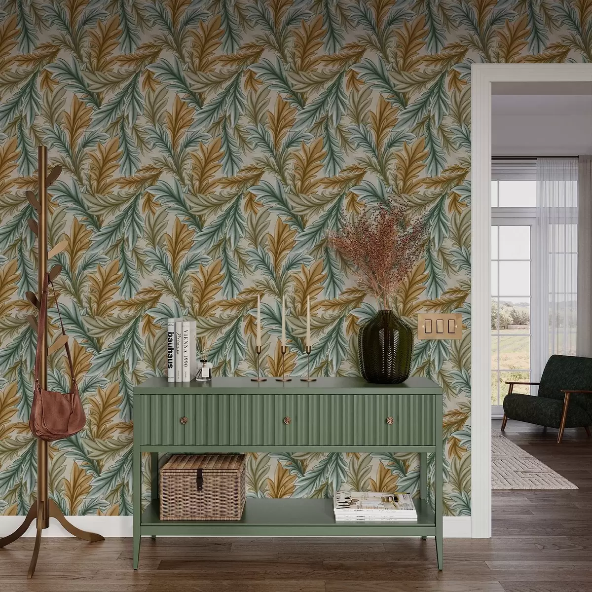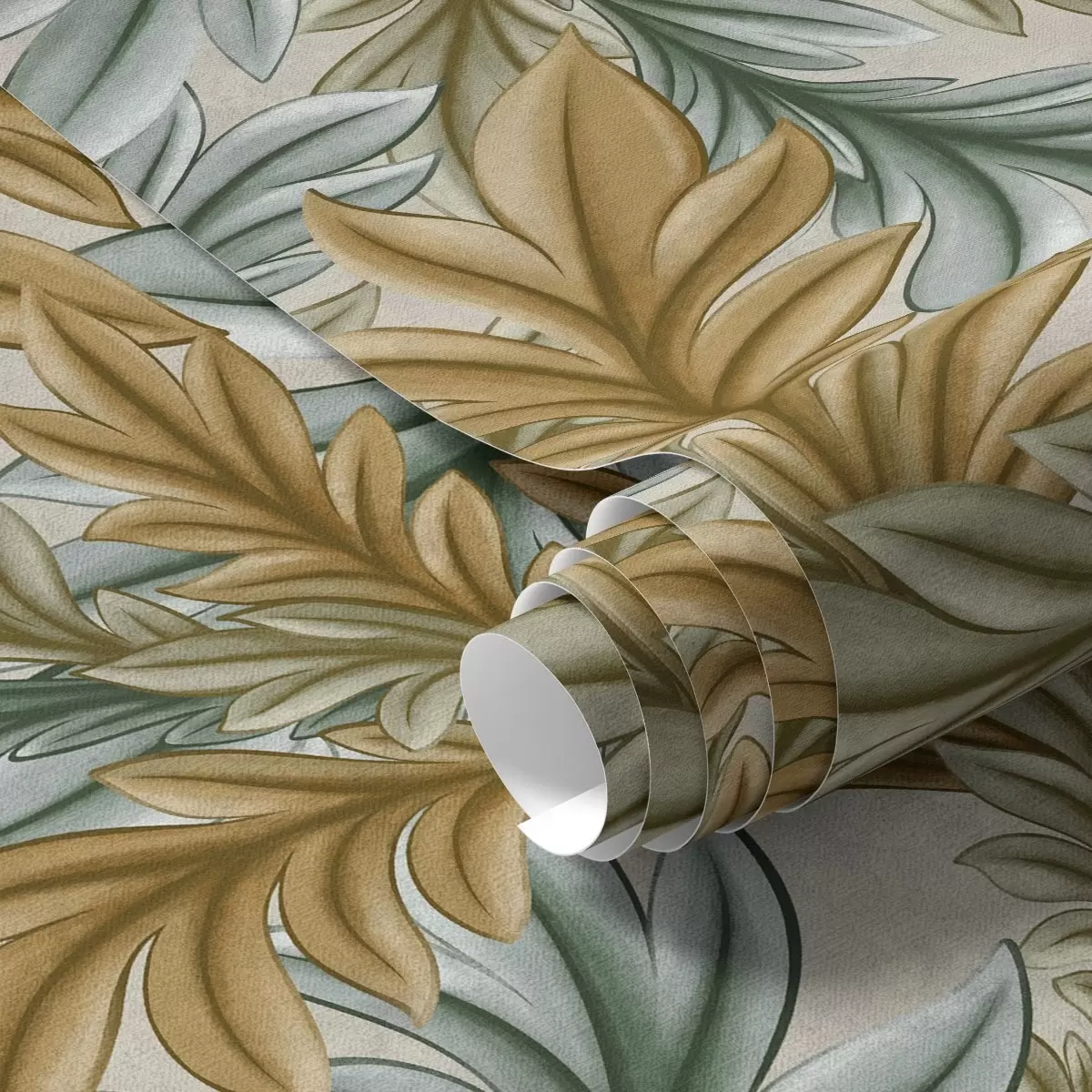 Wallpapers Decorative foliage in a warm ochre and green palette Nr. a00673