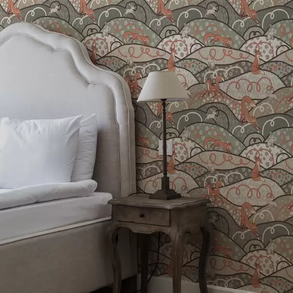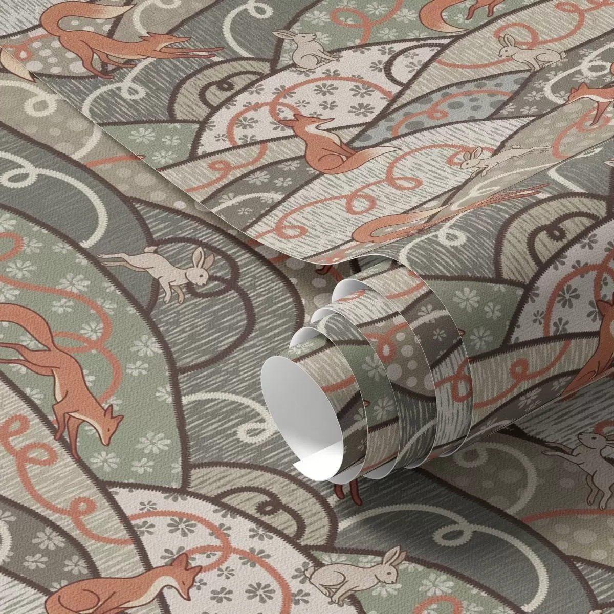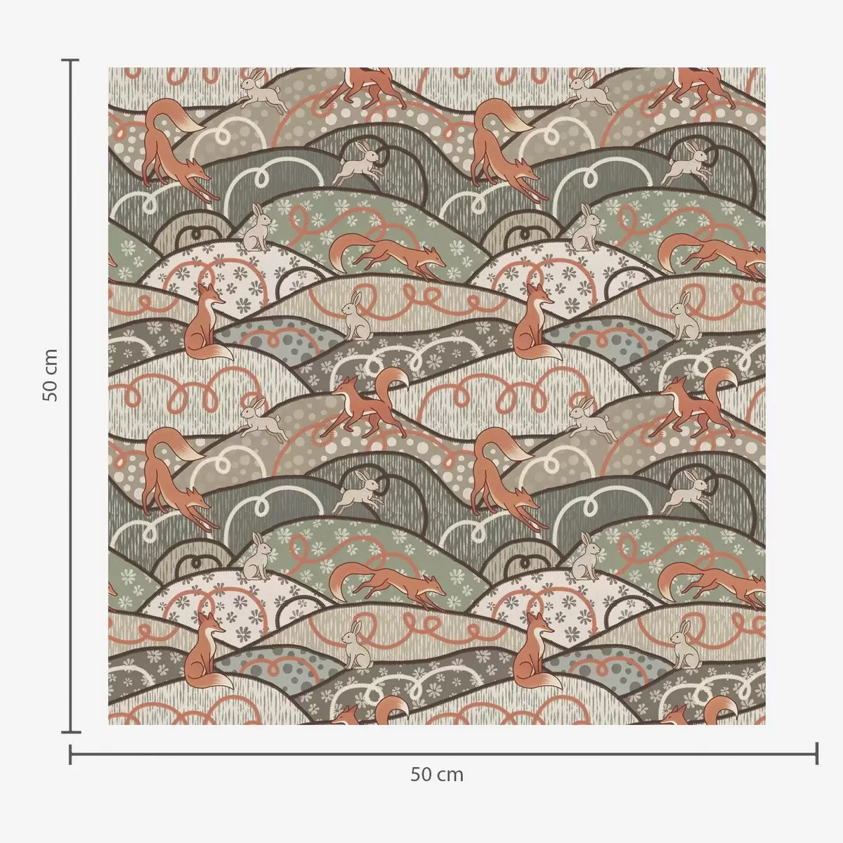 Wallpapers Foxes and hares on wavy hills, retro pattern Nr. a00690