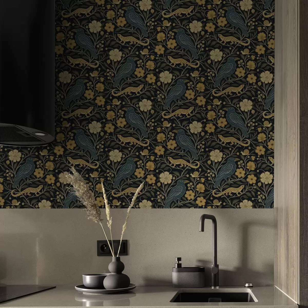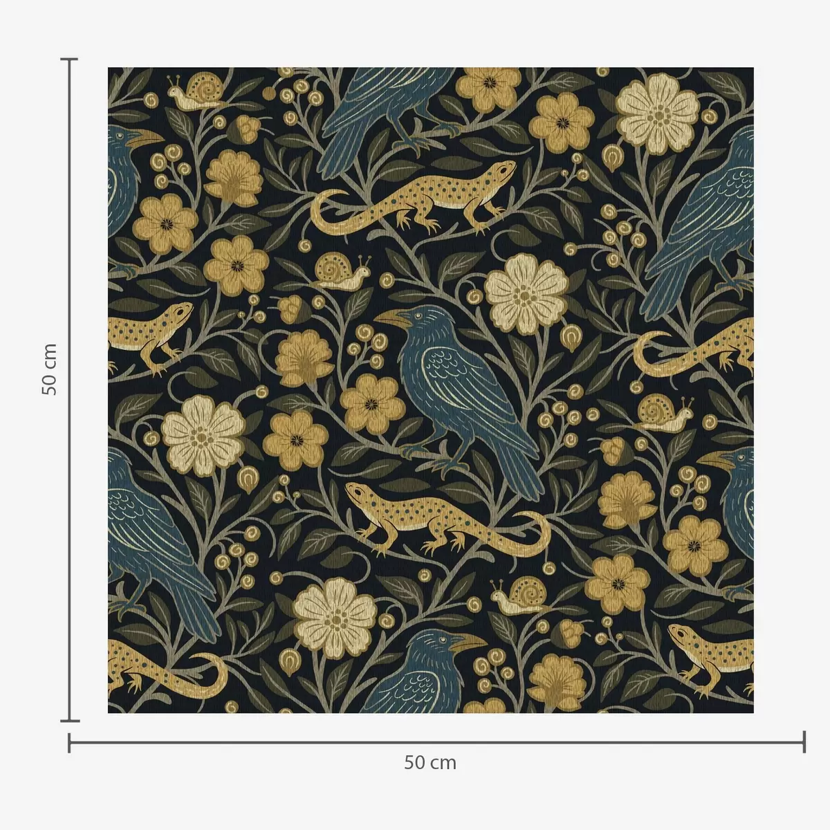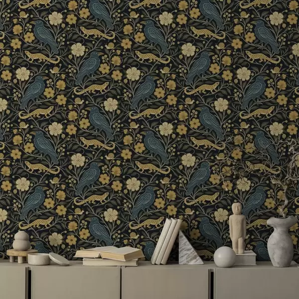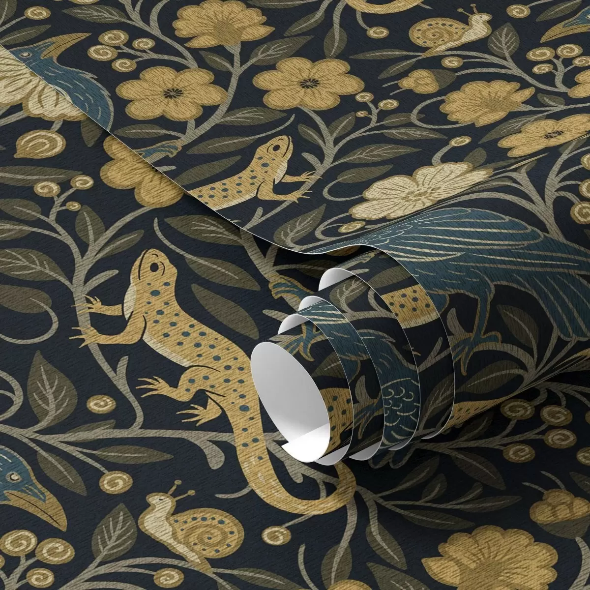 Wallpaper Birds, lizards and snails among flowers on a dark background a00691