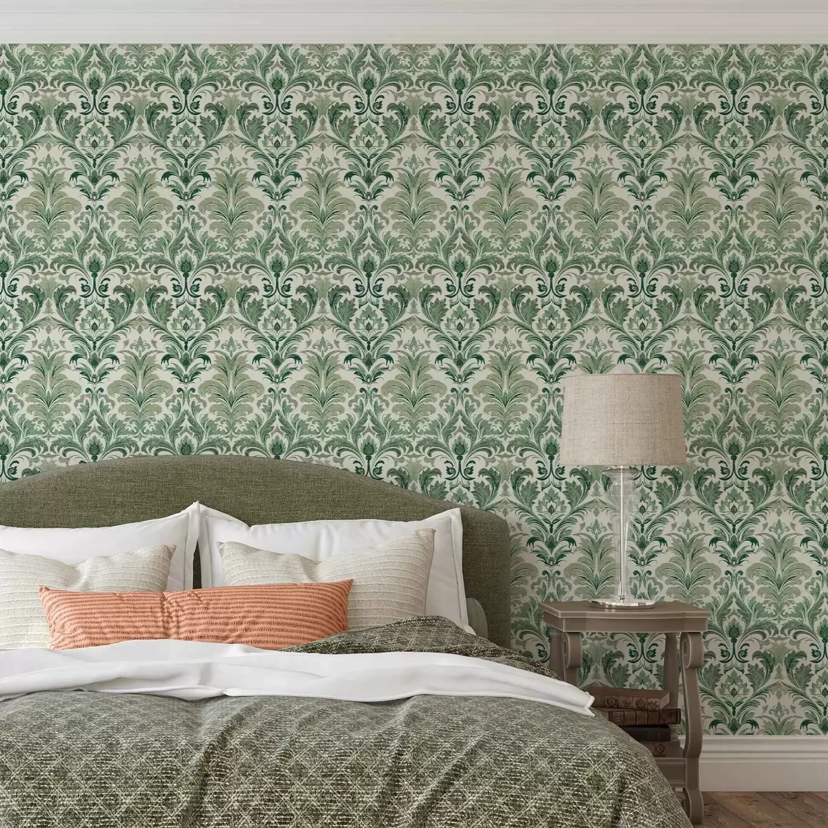 Wallpapers Green damask with raised texture on a light background Nr. a00692