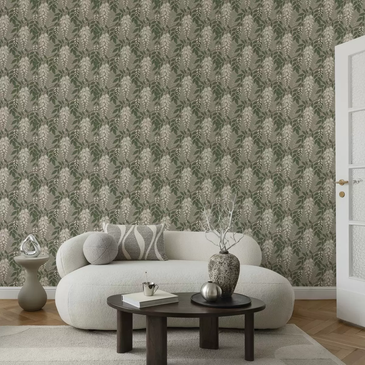 Wallpapers Light wisteria on a gray-olive background, cascading clusters Nr. a00694