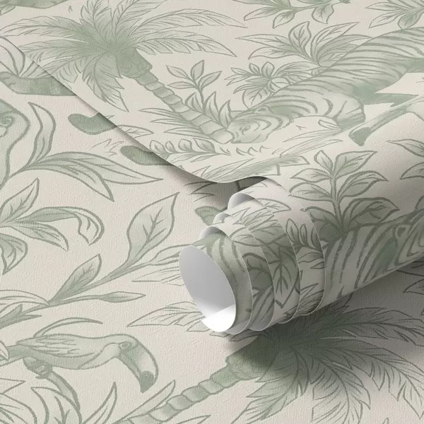 Wallpapers Tigers and tropical birds among palms on a light background Nr. a00711