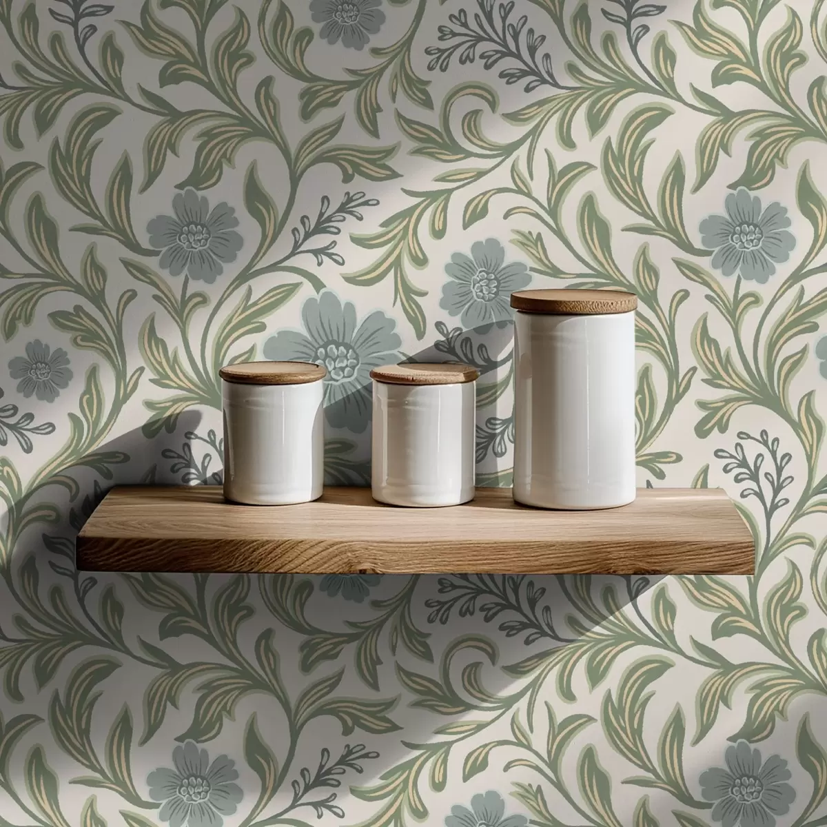 Wallpapers Sage-gray floral ornament on a light background Nr. a00712