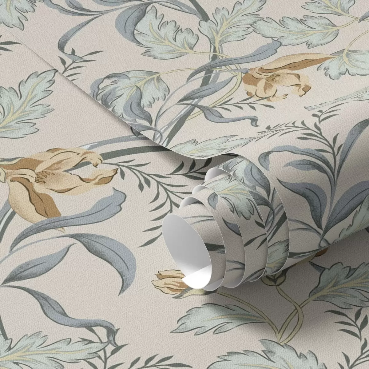 Wallpapers Vintage flowers with blue foliage on a cream background Nr. a00717