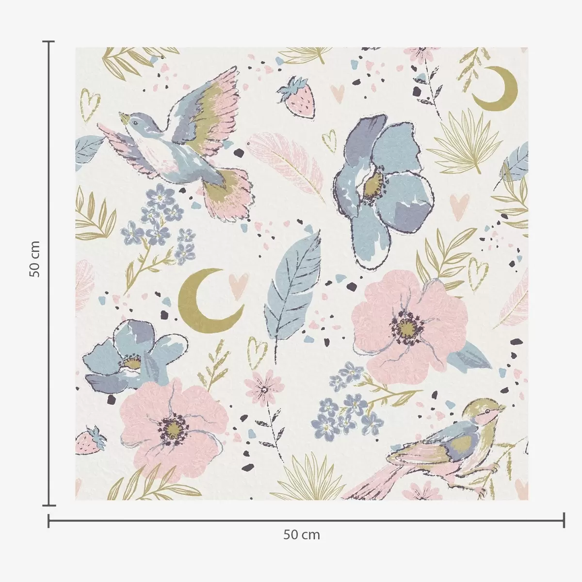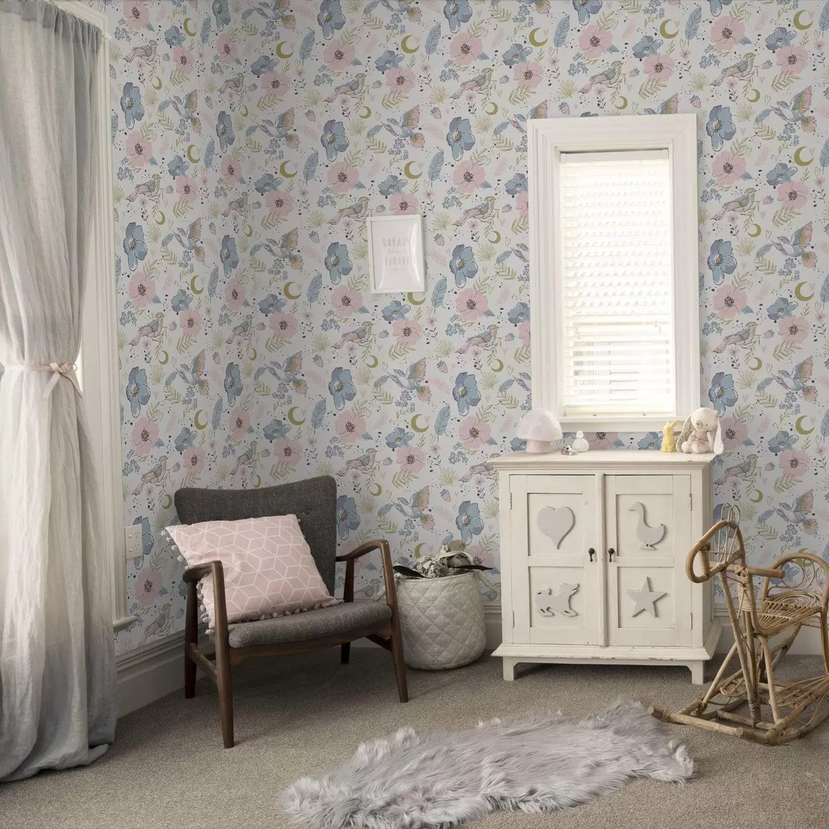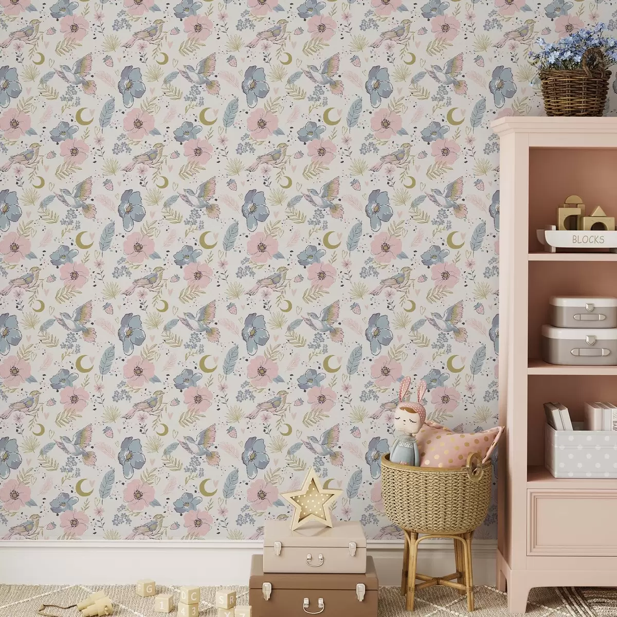 Wallpapers Pastel birds and flowers with crescent moons on a white background Nr. a00721
