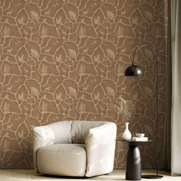 Wallpapers Silhouettes of animals and trees in a natural landscape with stone texture Nr. a00727
