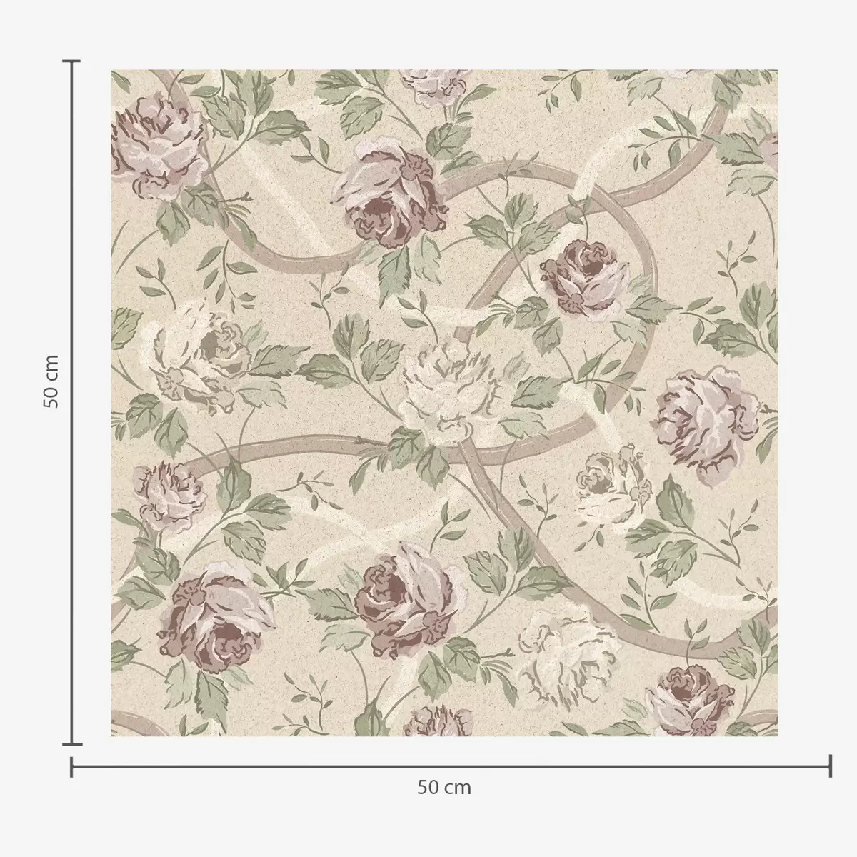 Wallpapers Roses with green leaves on a warm beige base Nr. a00729