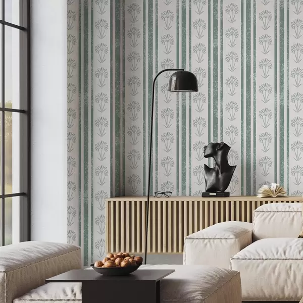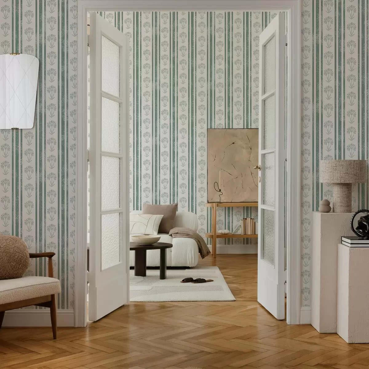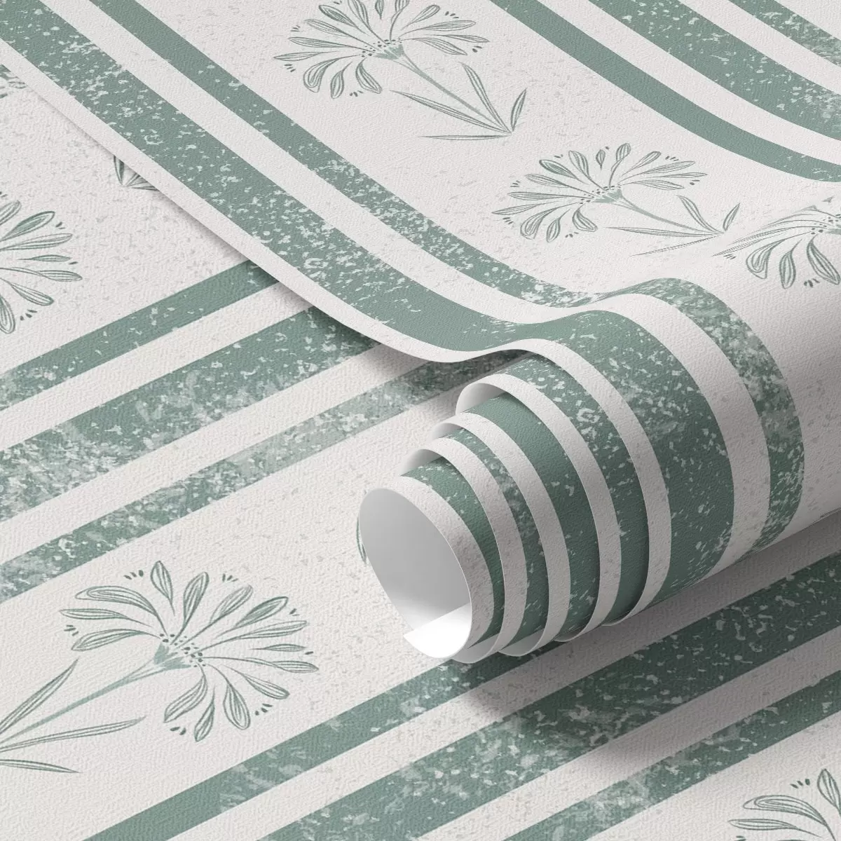 Wallpapers Ribbon pattern with flowers in green shades Nr. a00732