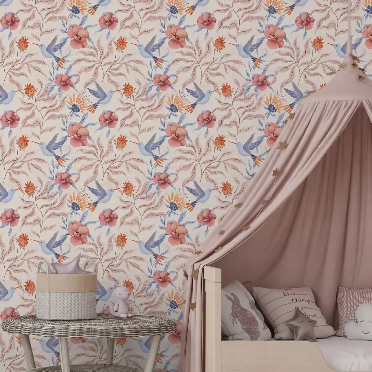Wallpapers Hummingbirds among large flowers in pink and blue tones Nr. a00733