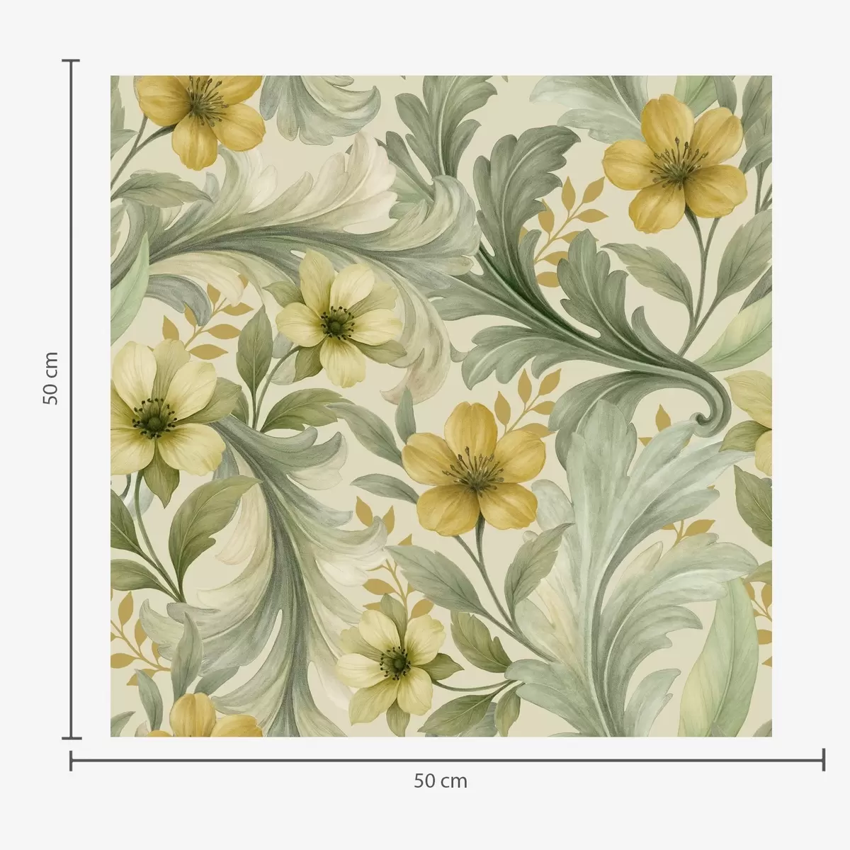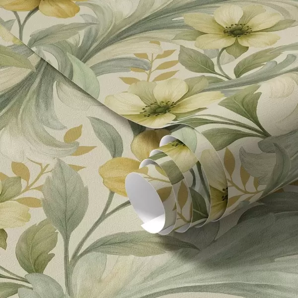Wallpapers Acanthus scrolls with flowers in green and yellow tones Nr. a00749