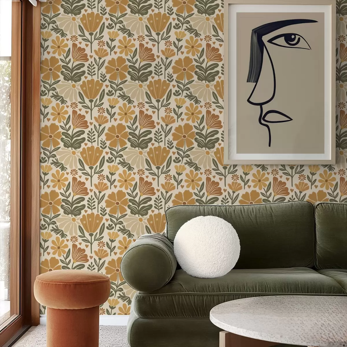 Wallpapers Stylized flowers in warm tones with hearts Nr. a00752