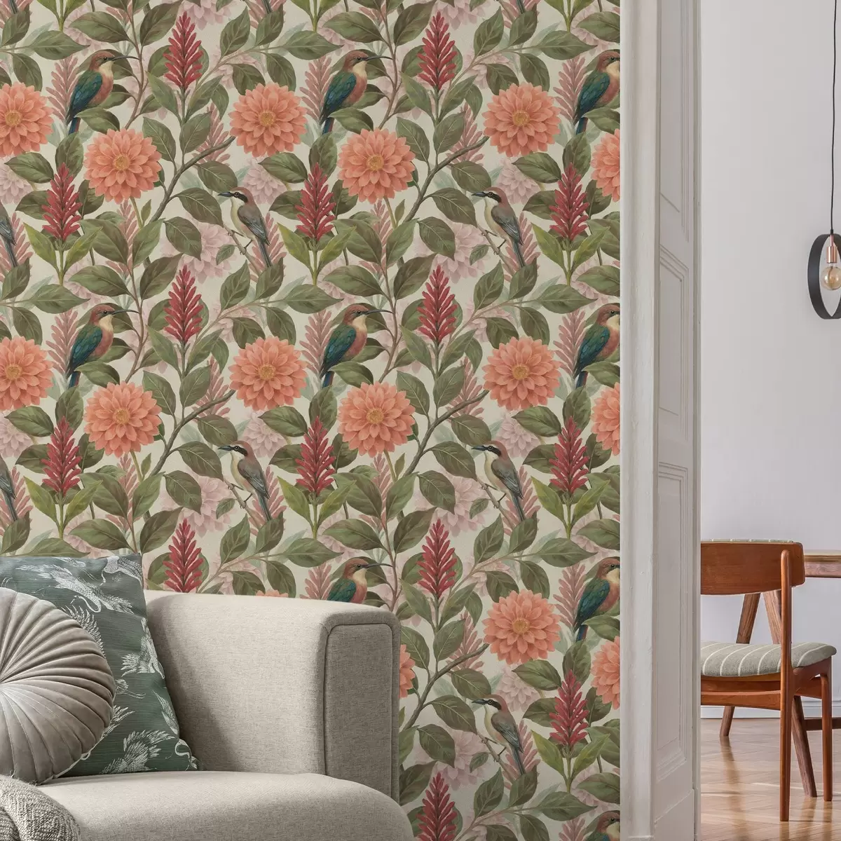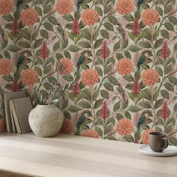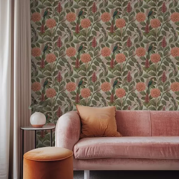 Wallpapers Birds among flowers and leaves in warm tones Nr. a00753