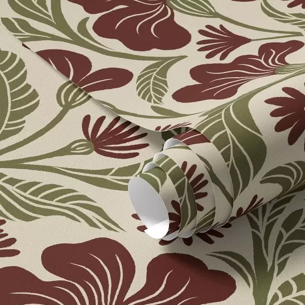 Wallpaper Burgundy flowers with green leaves on light background a00761