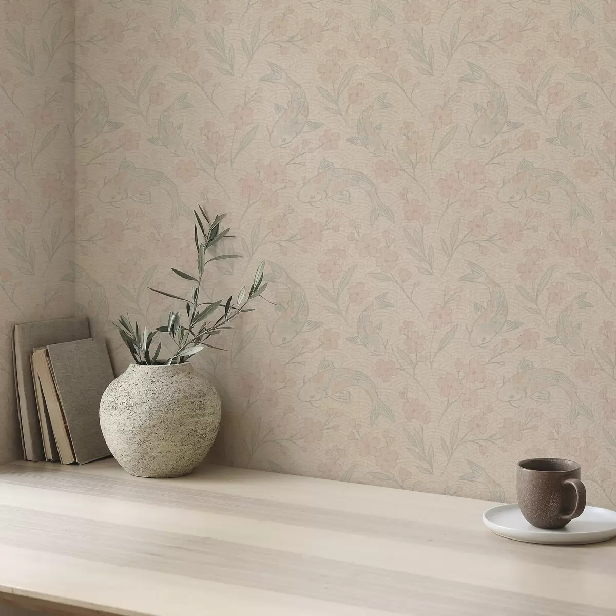 Wallpapers Carps among flowers in soft beige-pink shades Nr. a00766