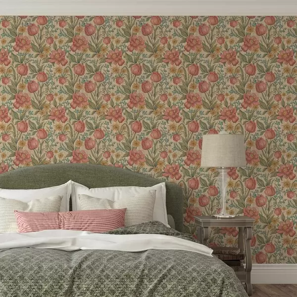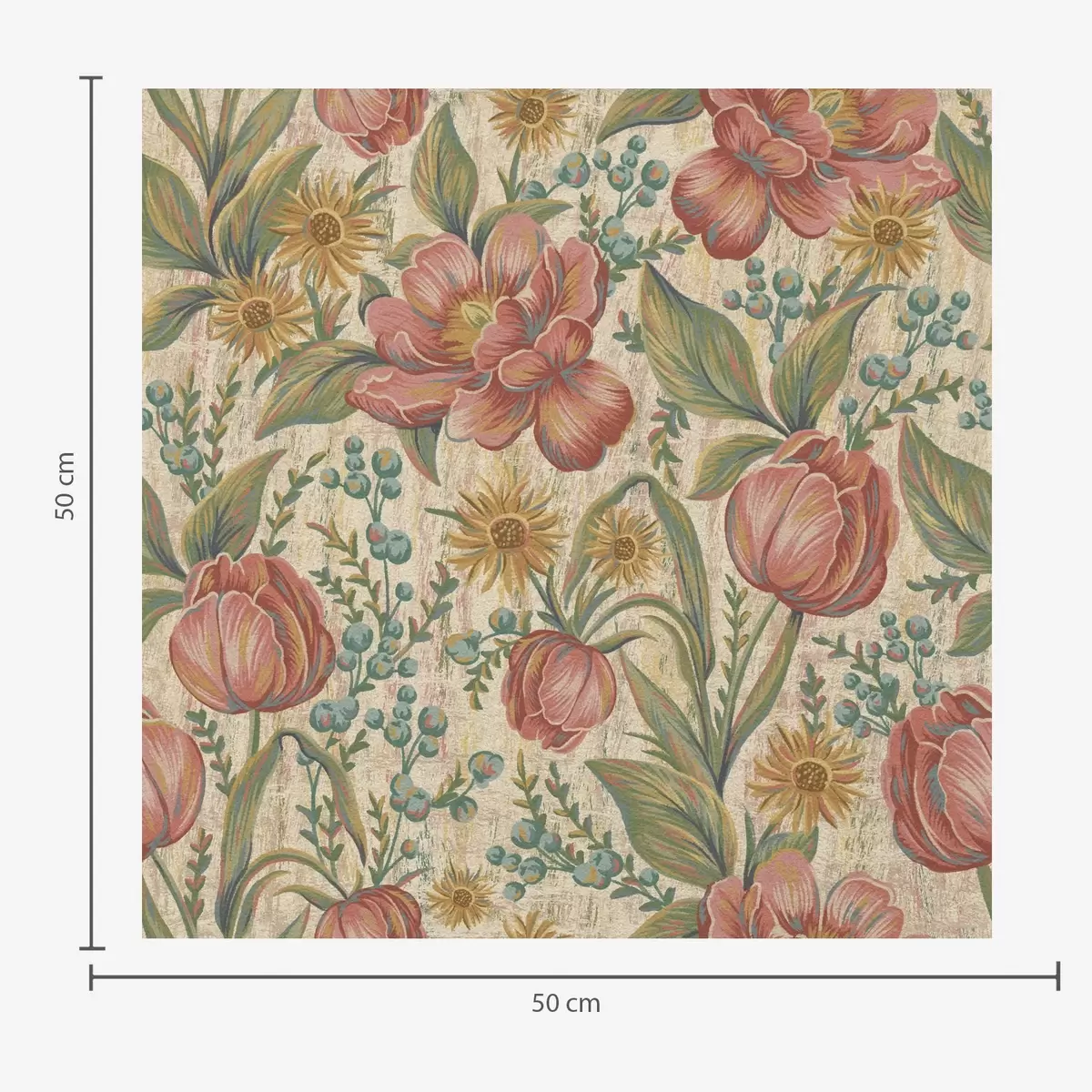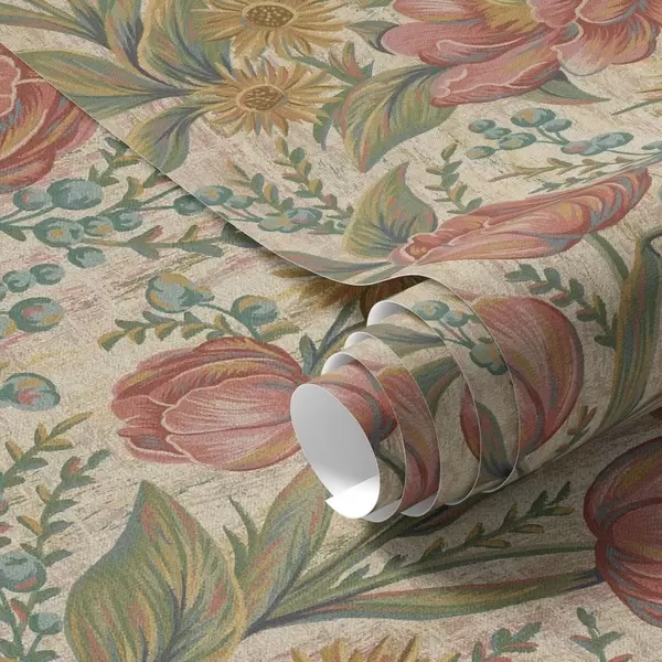 Wallpapers Vintage tulips and asters, textured cream ground Nr. a00773