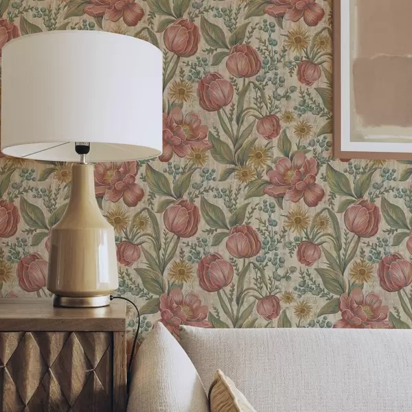 Wallpapers Vintage tulips and asters, textured cream ground Nr. a00773