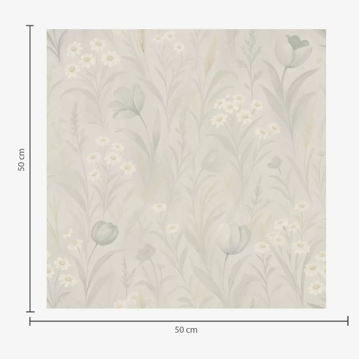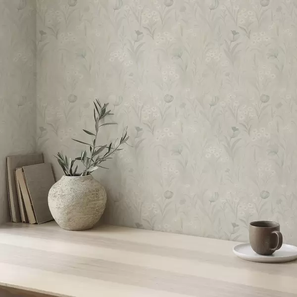 Wallpapers Gentle meadow with tulips and daisies, pastel sage Nr. a00779