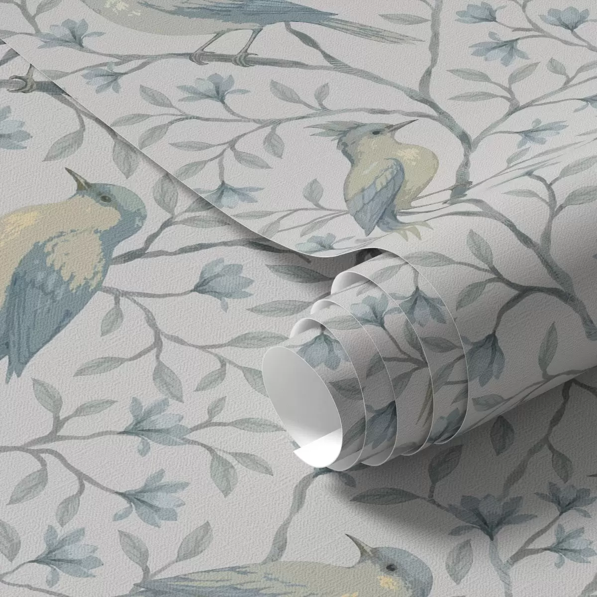 Wallpapers Birds on branches, gray-blue scheme Nr. a00782