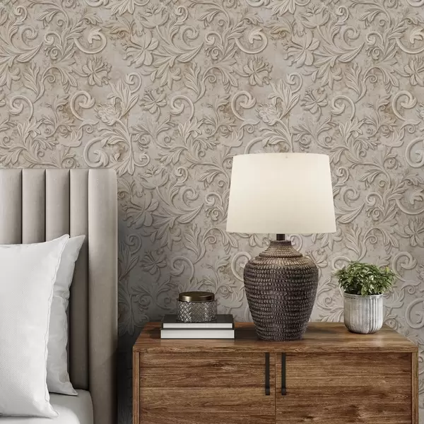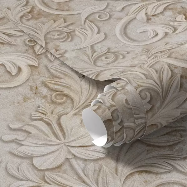 Wallpapers Stone relief with floral scrolls, vintage beige Nr. a00784