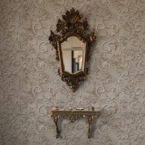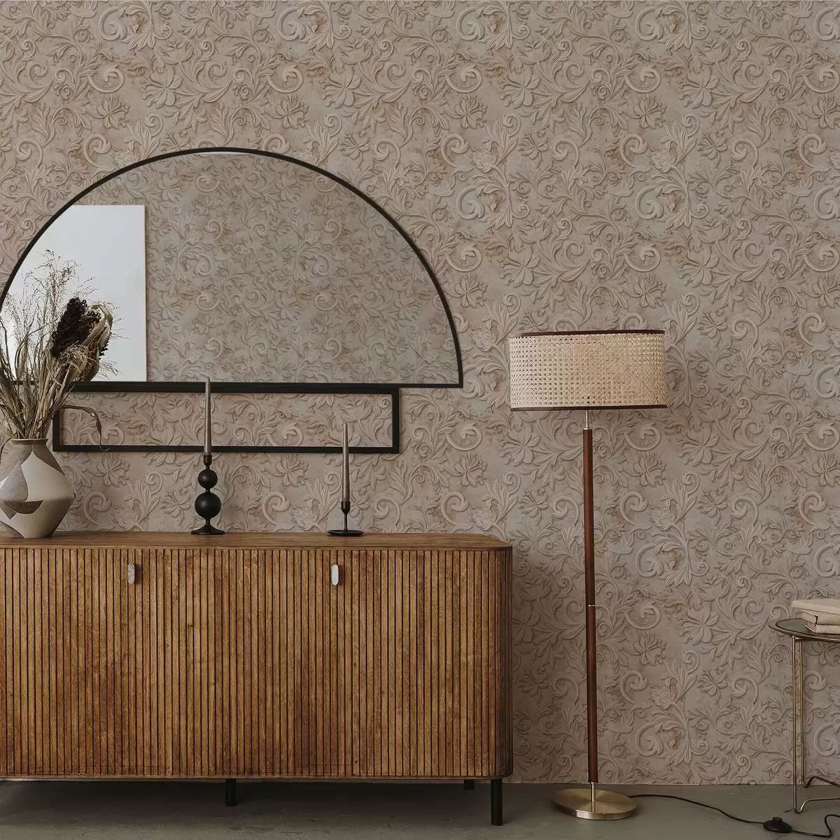 Wallpapers Stone relief with floral scrolls, vintage beige Nr. a00784