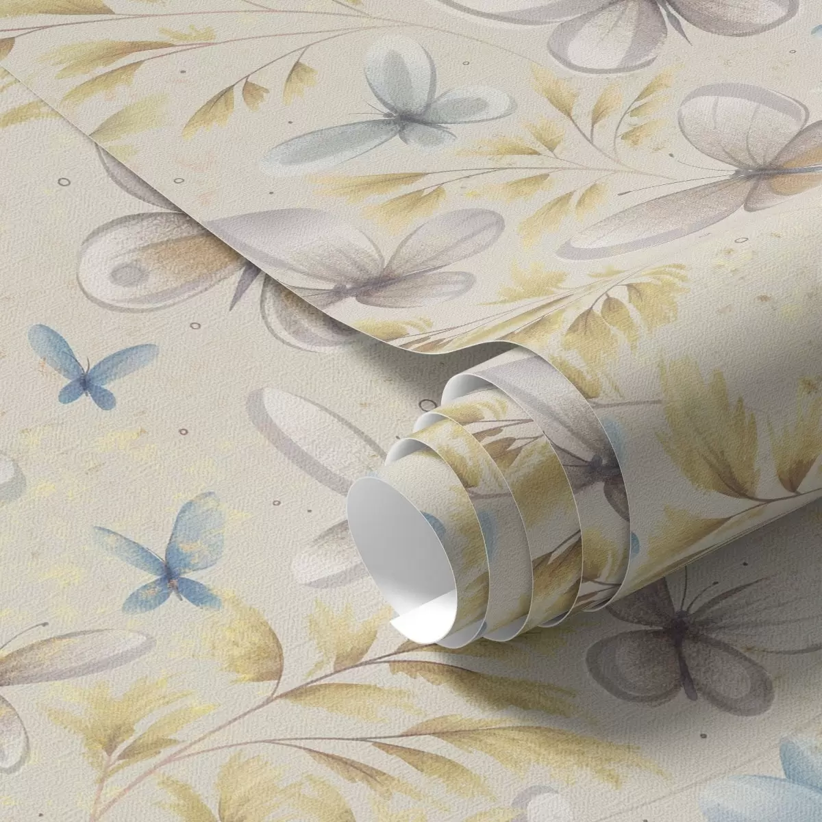 Wallpaper Light butterflies among yellow leaves on a light background a00795