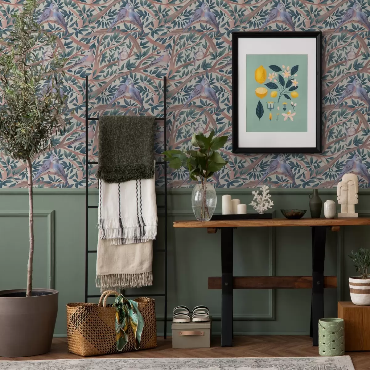Wallpapers Doves among branches and leaves in a soft pastel palette Nr. a00796