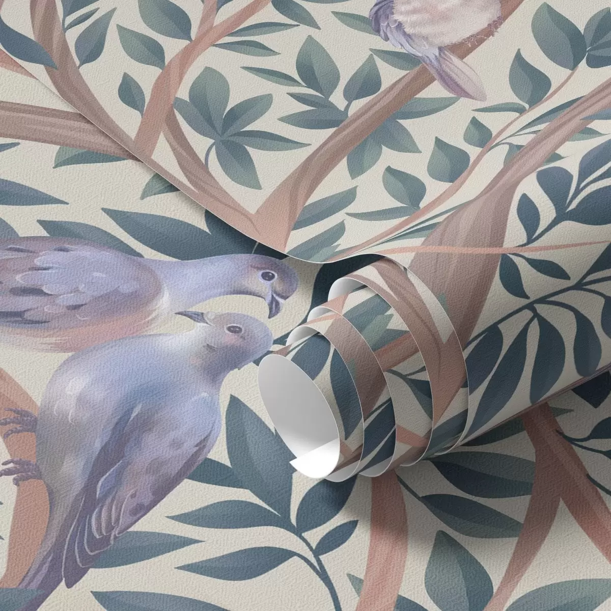 Wallpapers Doves among branches and leaves in a soft pastel palette Nr. a00796