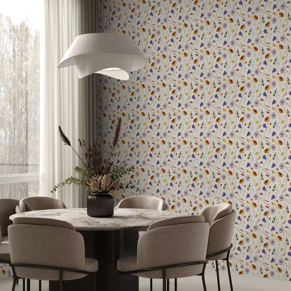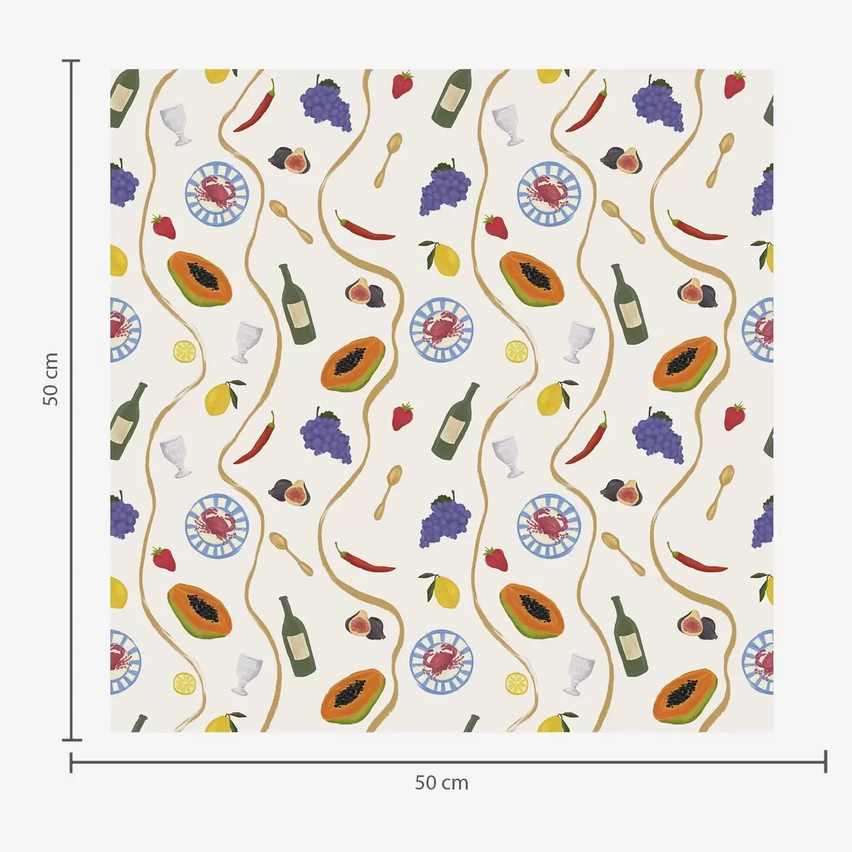 Printed to order and delivered in rolls up to 50 cm wide.