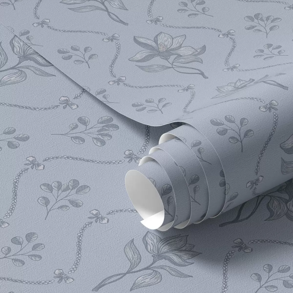 Wallpapers Small flowers and ribbons in gray-blue palette Nr. a00808v2