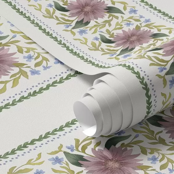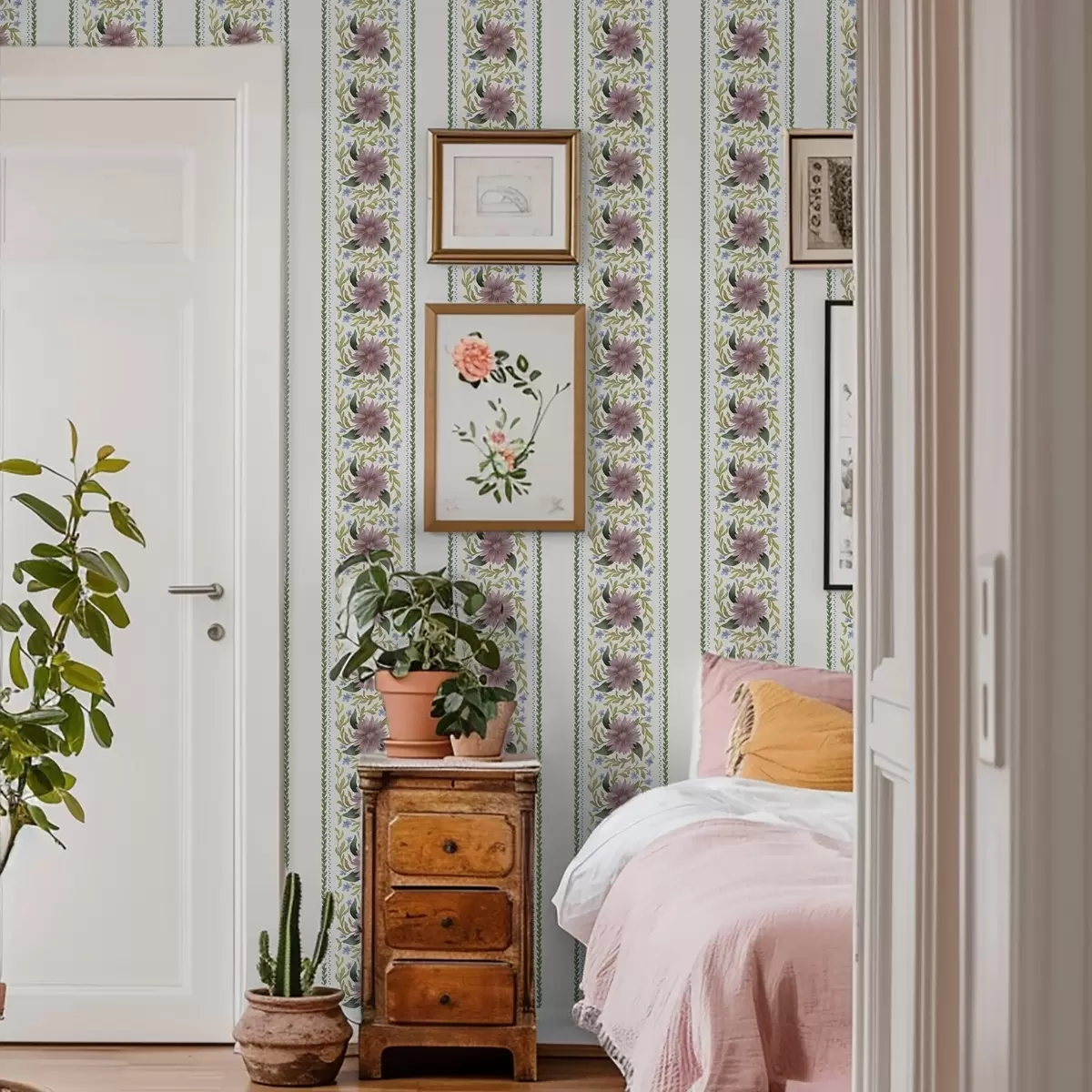 Wallpapers Vertical floral stripes in lilac-blue tones Nr. a00809