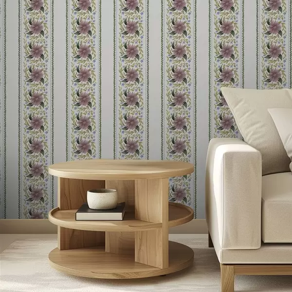Wallpapers Vertical floral stripes in lilac-blue tones Nr. a00809