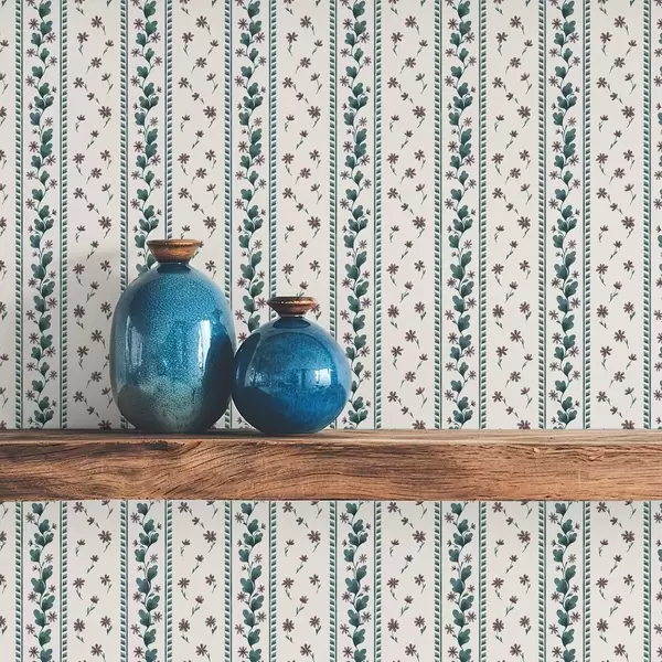 Wallpapers Vertical floral stripes in blue-brown tones Nr. a00811