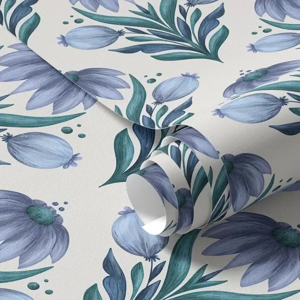 Wallpapers Symmetrical floral ornament in blue-white shades Nr. a00812v2