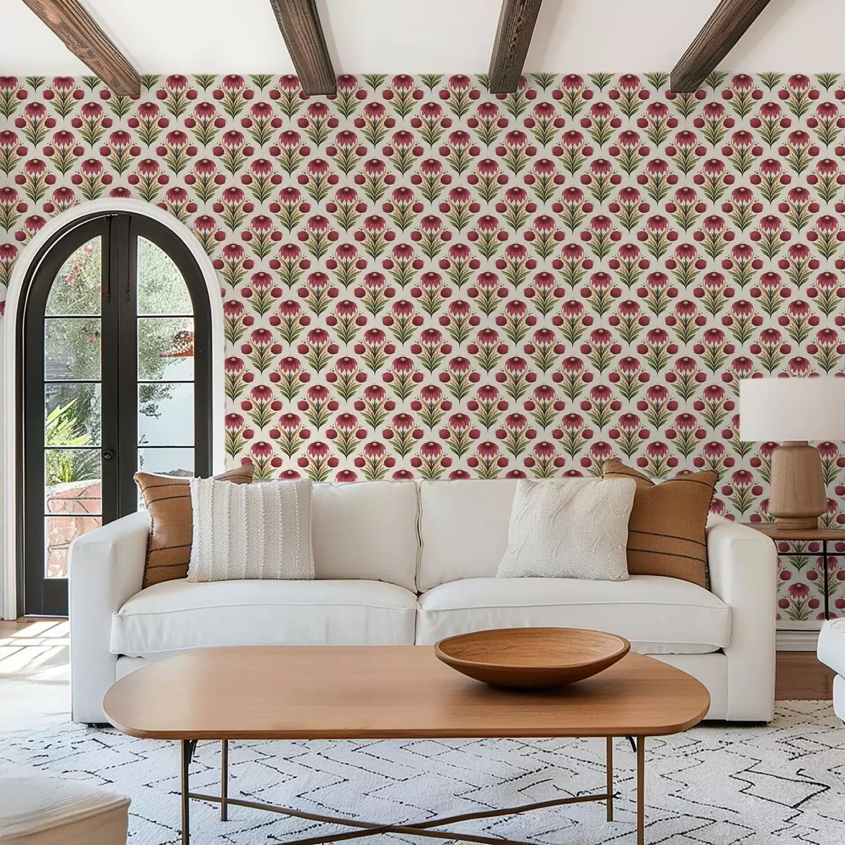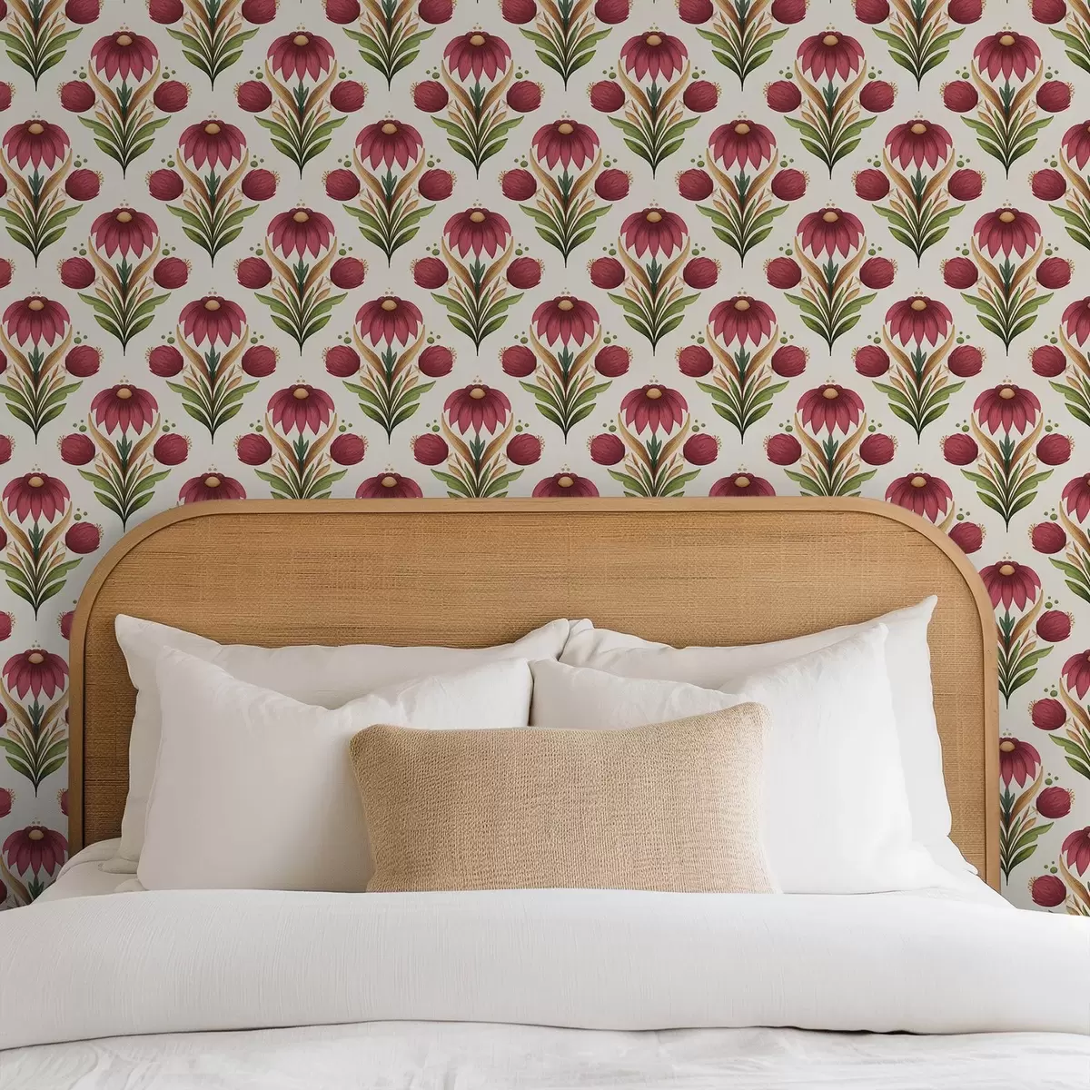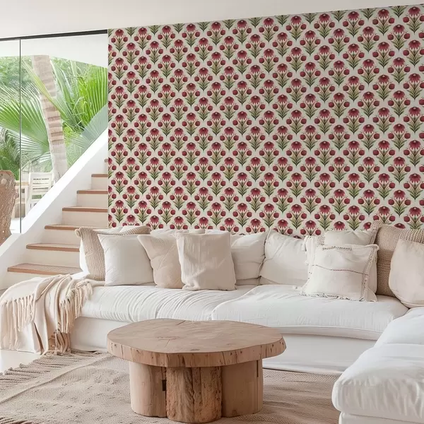 Wallpapers Symmetrical floral ornament in rich red-green tones Nr. a00812v4
