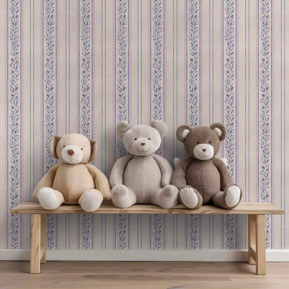 Wallpapers Vertical stripes with lavender vignettes, warm beige Nr. a00813