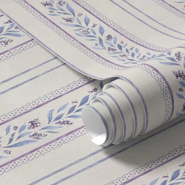 Wallpapers Vertical stripes with lavender garlands, beige background Nr. a00813v1