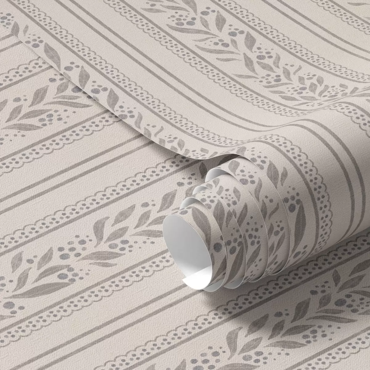 Wallpapers Stripes with lace and gray-beige sprigs Nr. a00814