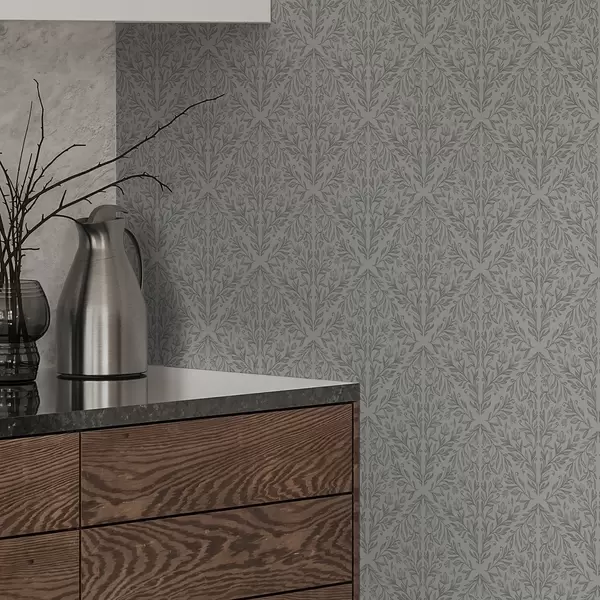 Wallpaper Botanical damask in light gray with soft outline a00815v2