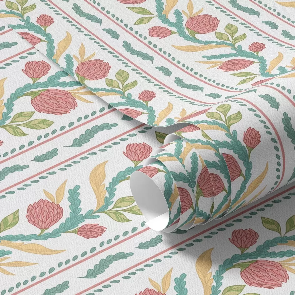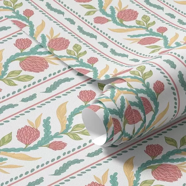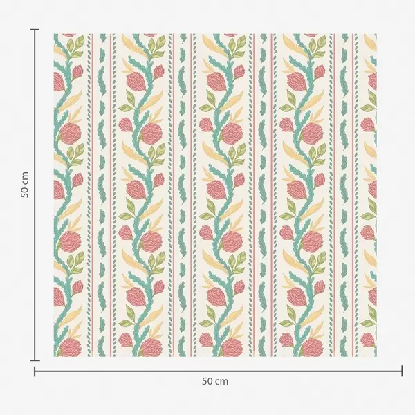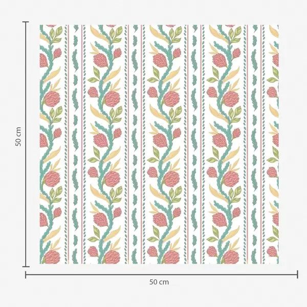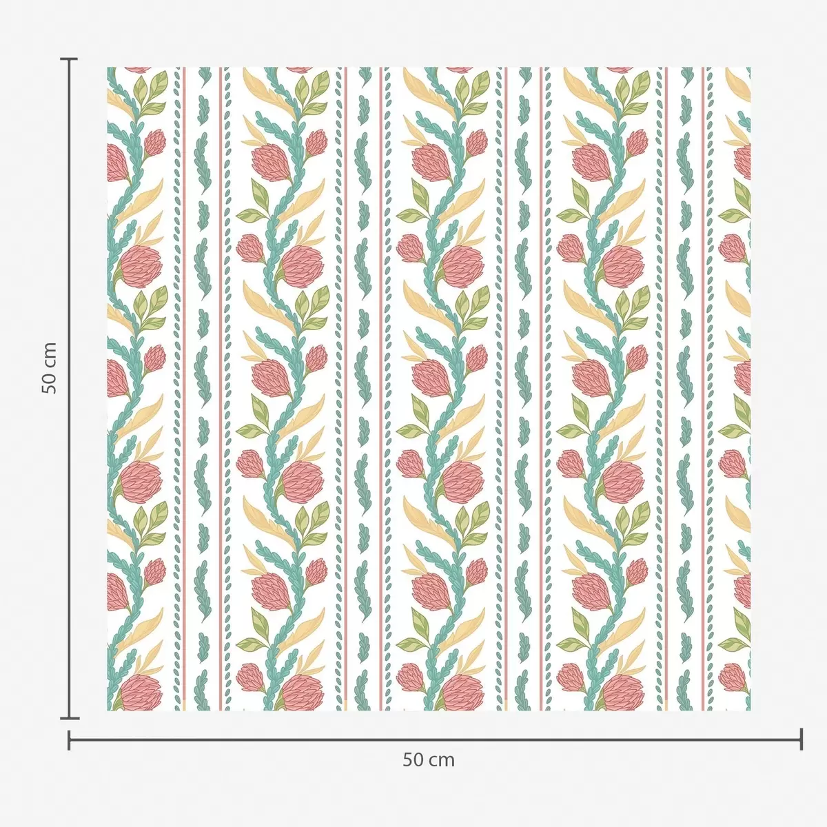 Wallpapers Vertical stripes with coral flowers and turquoise leaves Nr. a00816