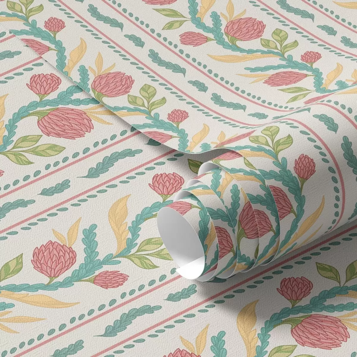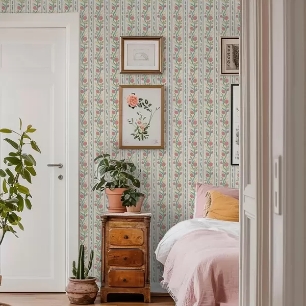 Wallpapers Stripes with coral buds on light cream background Nr. a00816v1