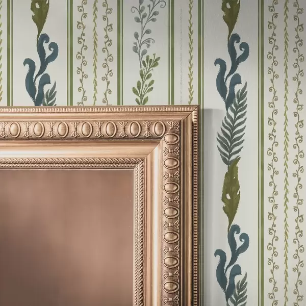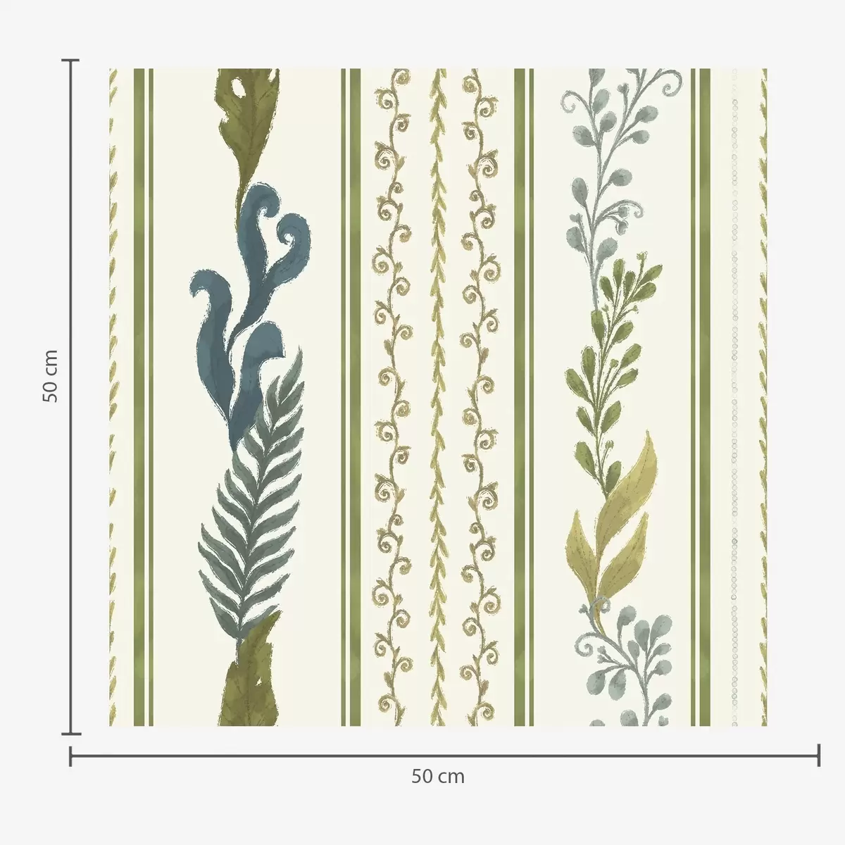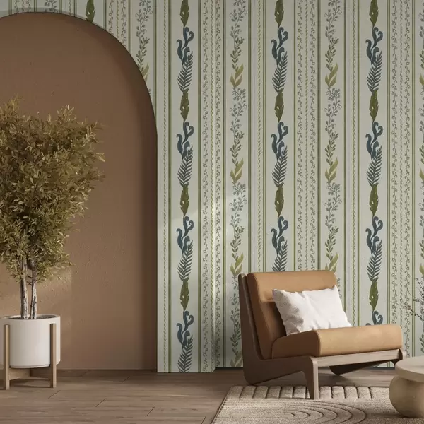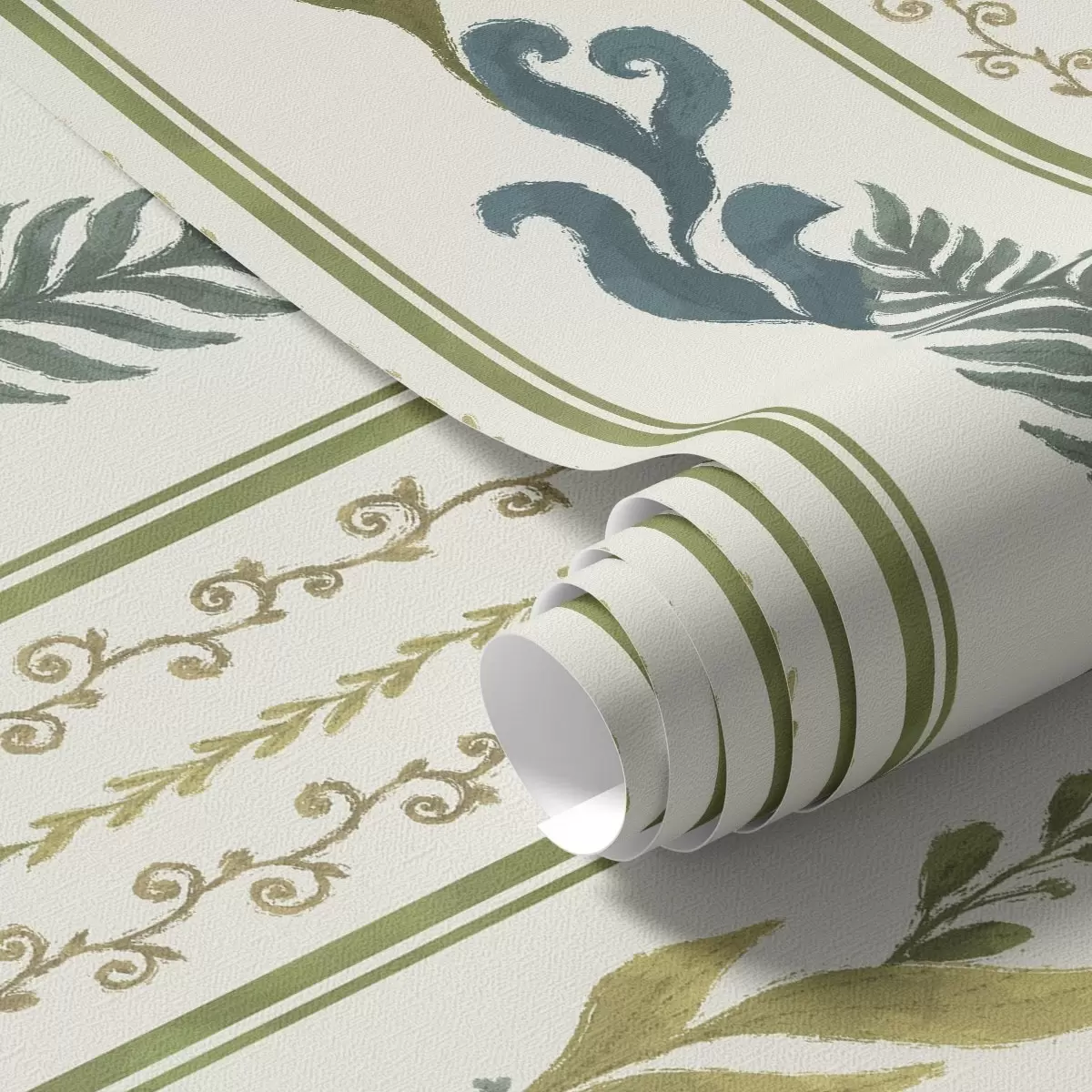 Wallpapers Stripes with scroll ornament and large branches in greens Nr. a00823