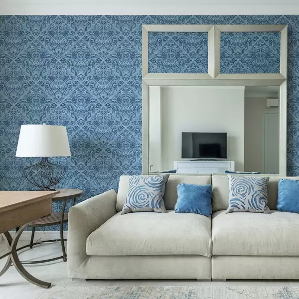 Wallpapers Damask in cool blue tones, stronger contrast Nr. a00826v2